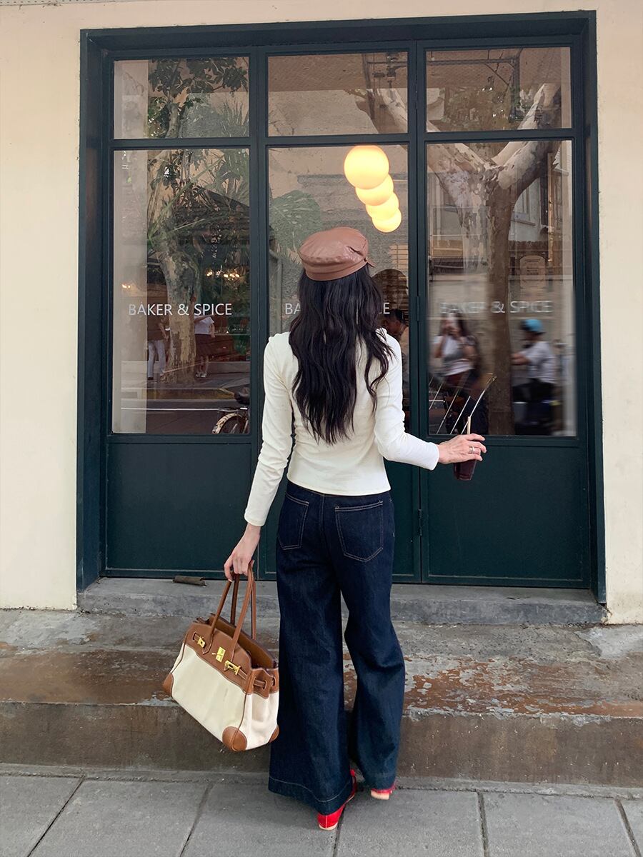 オフの日にはデニムに合わせてカジュアルダウンするなど、