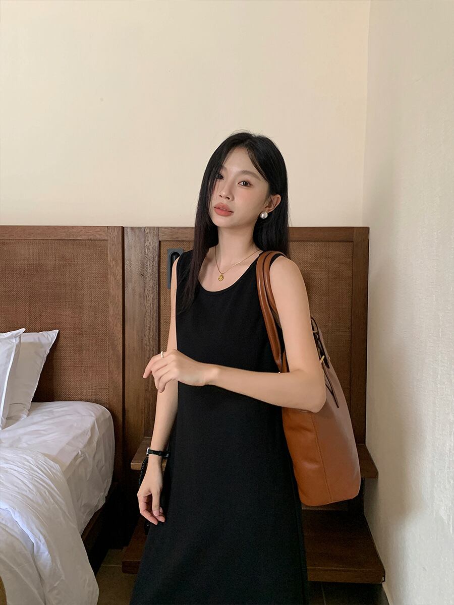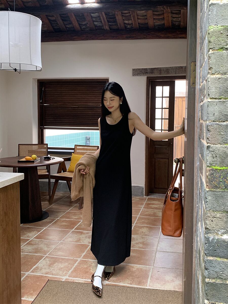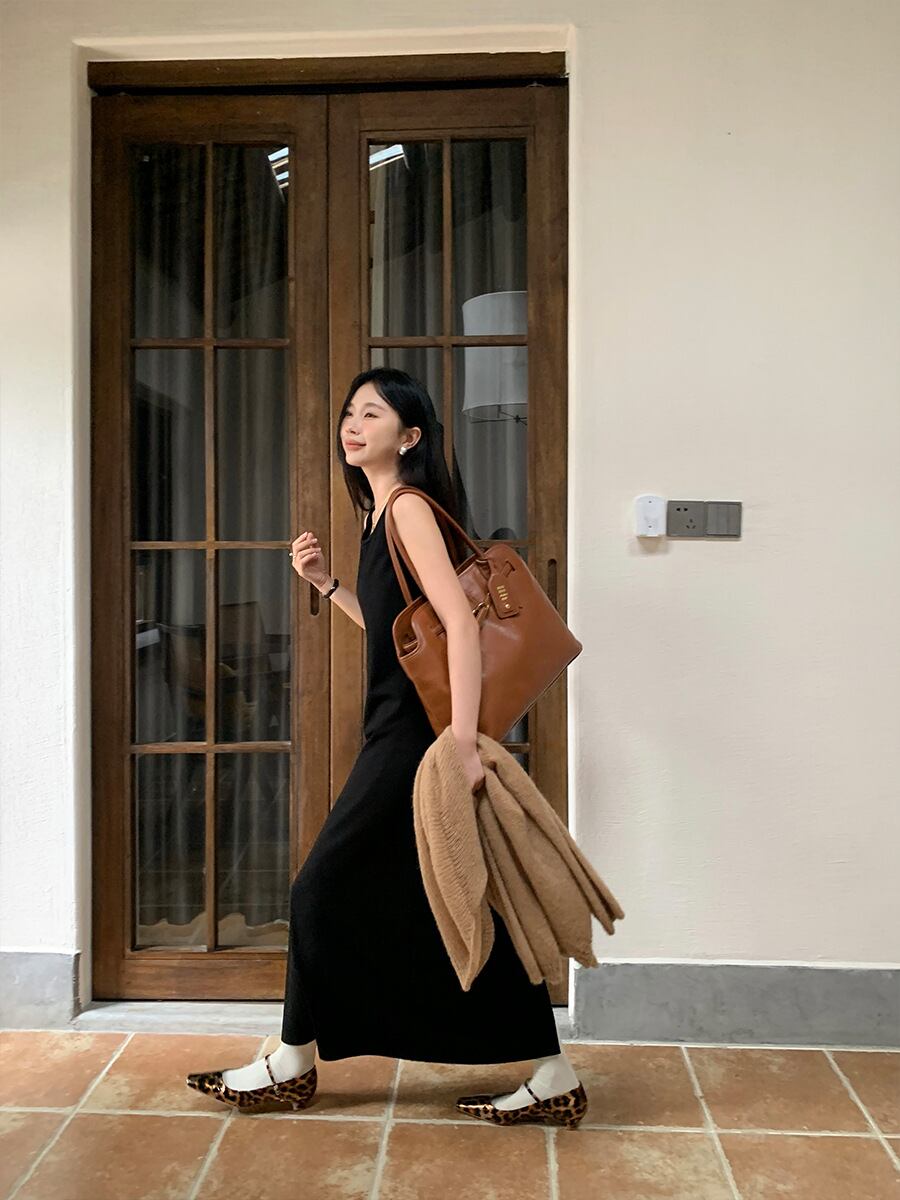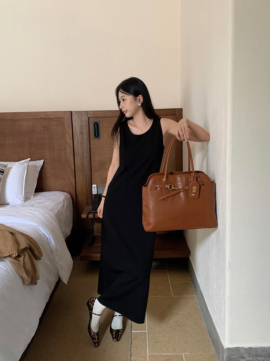 シンプルながらも洗練された、大人のためのノースリーブニットワンピース