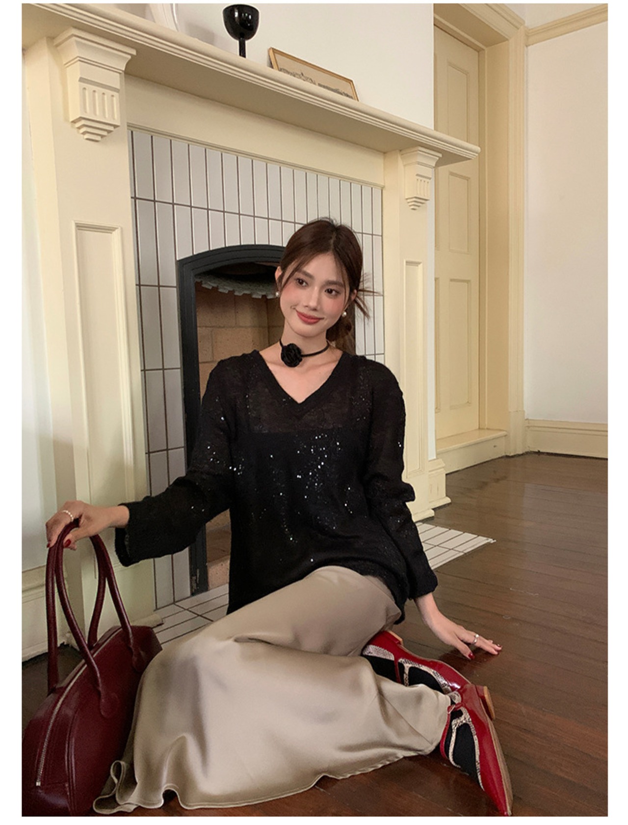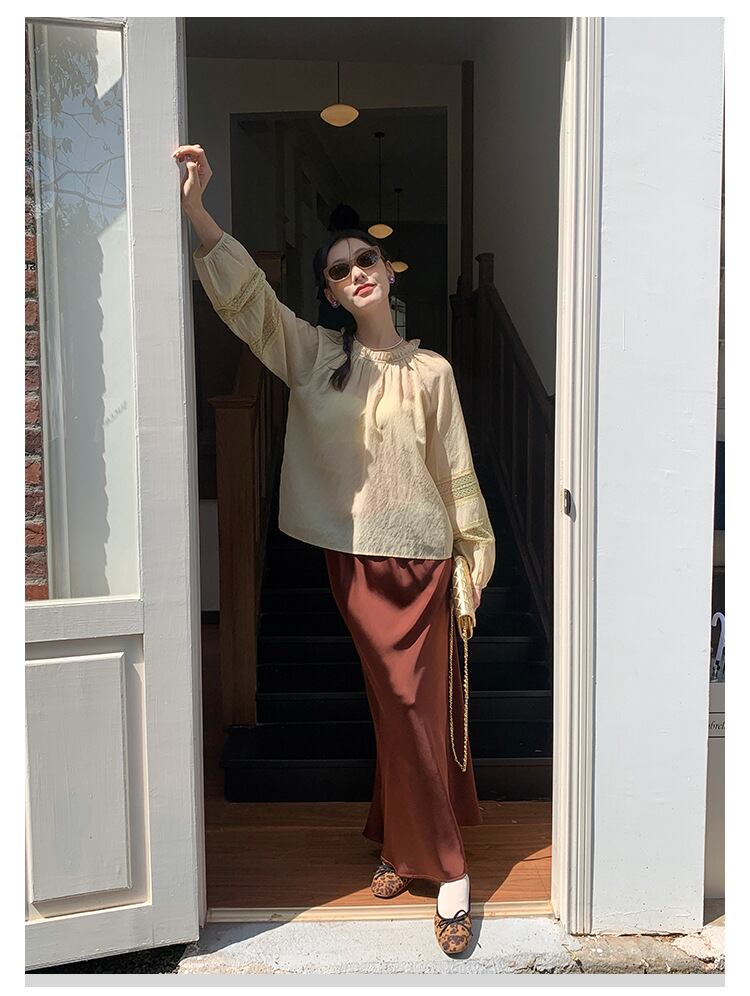 シンプルなデザインなので、ブラウスやニット、カットソーなど、