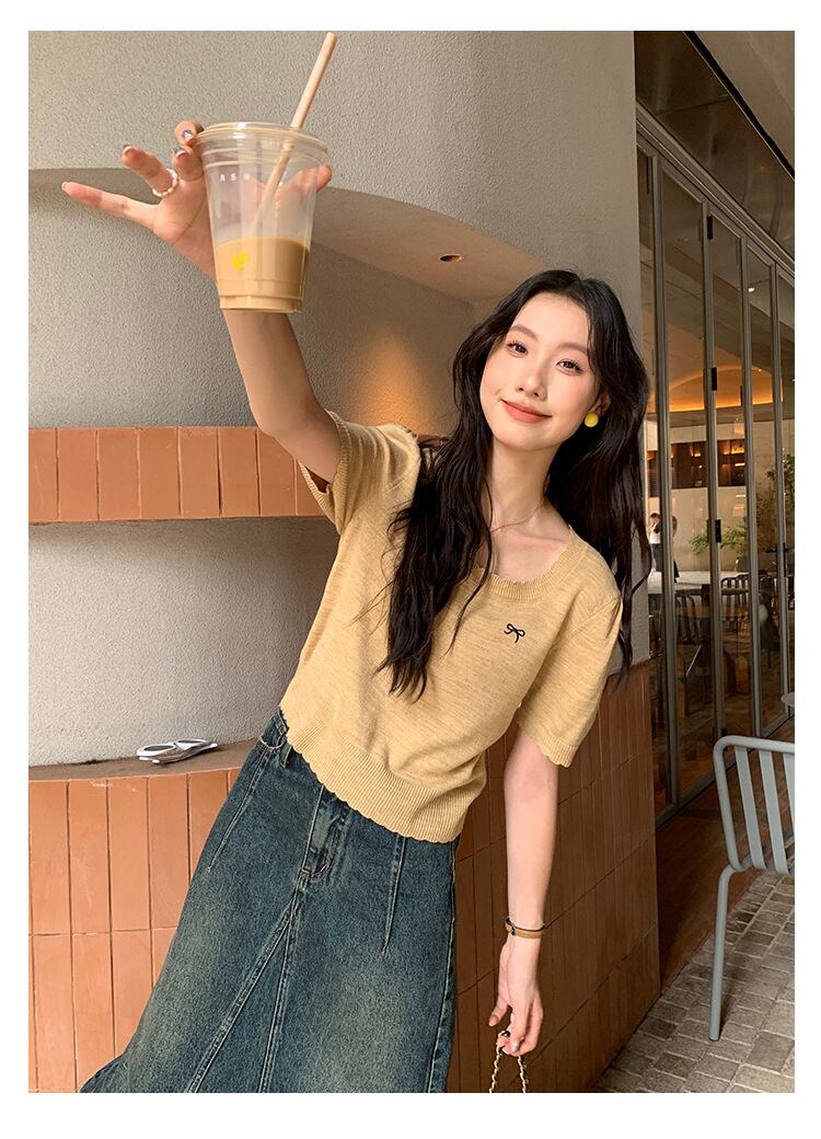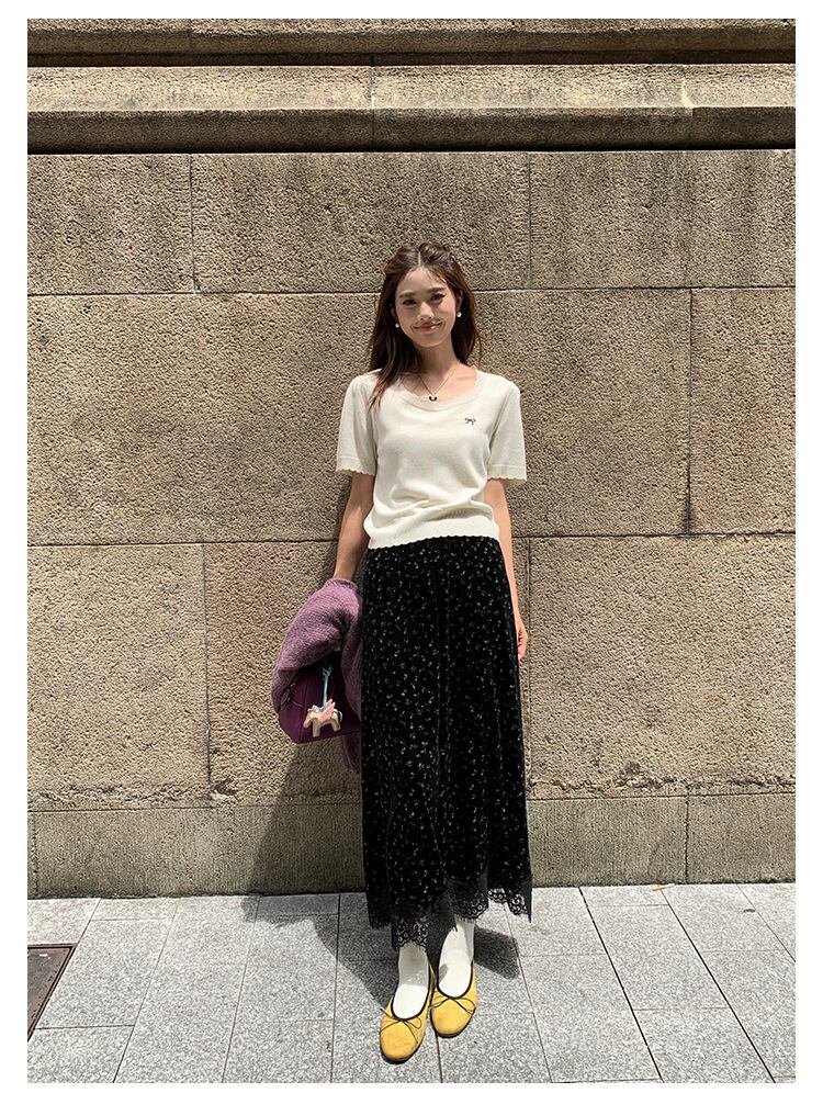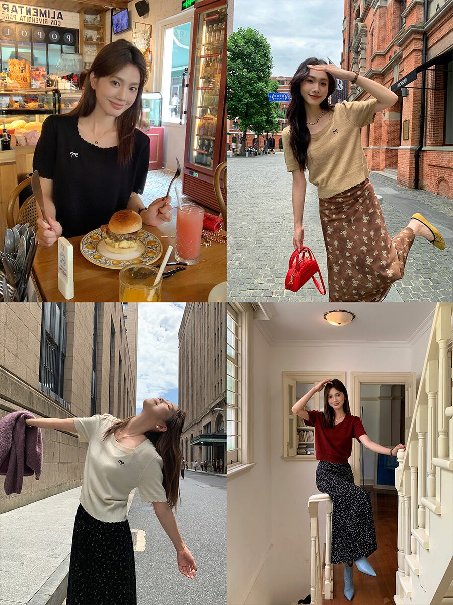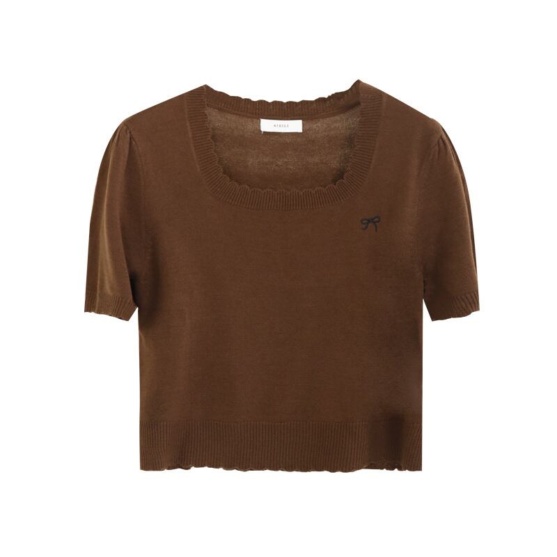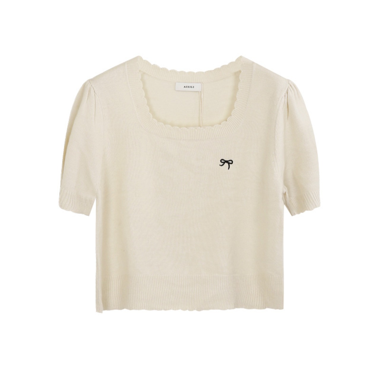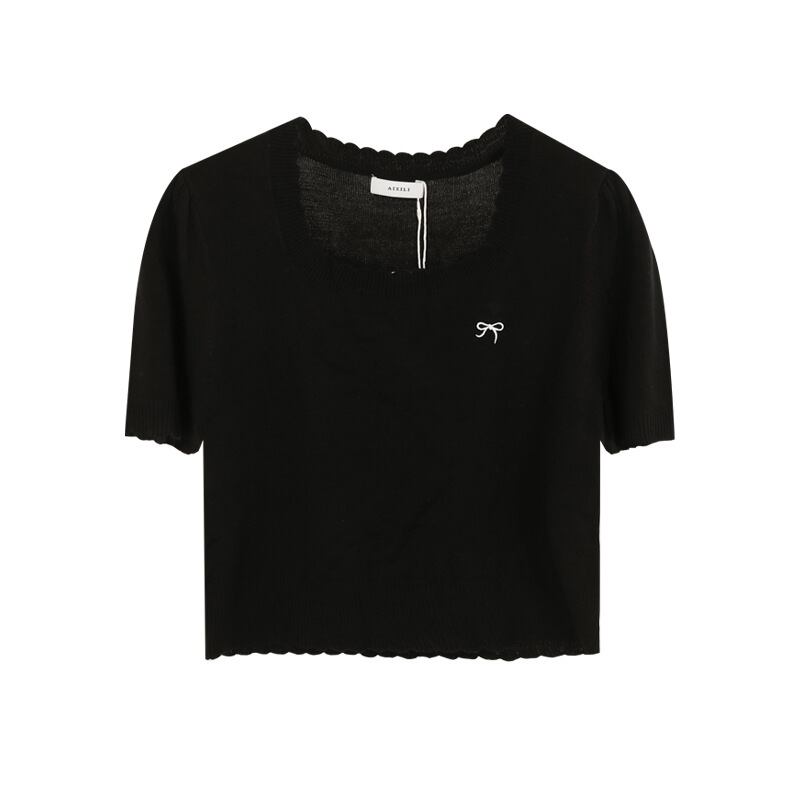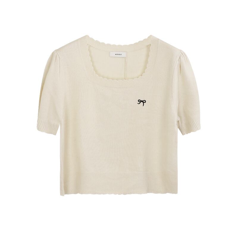シンプルなニットプルオーバーに、可憐なリボン刺繍をプラス。