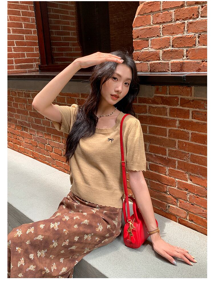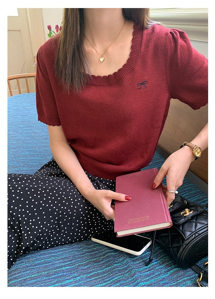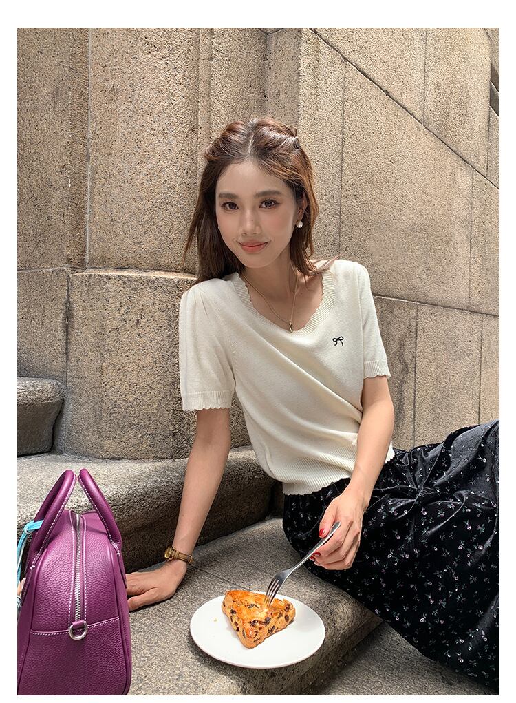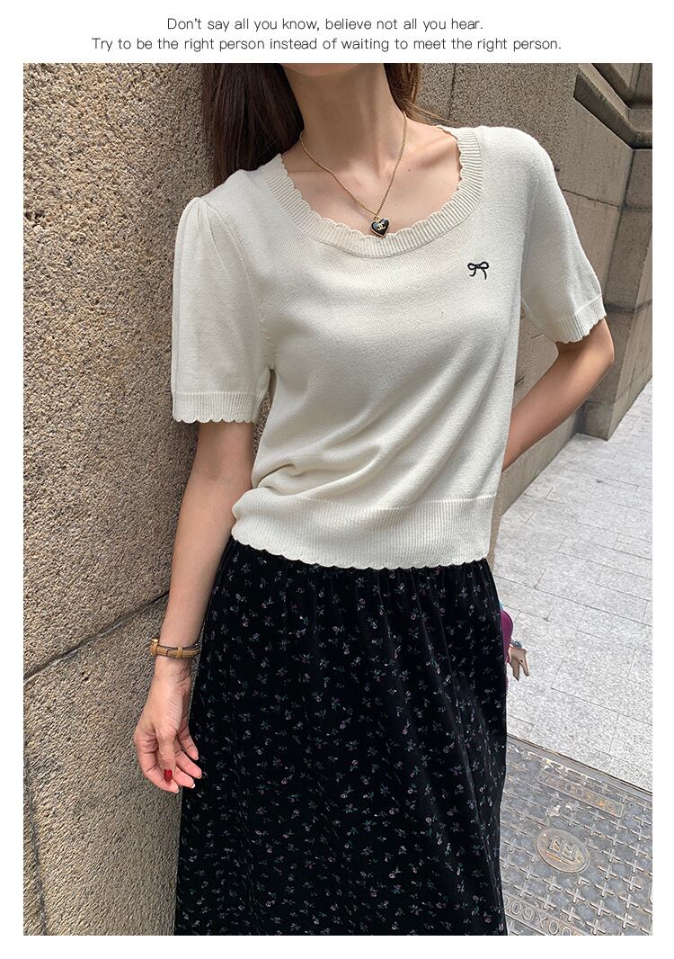 可憐なリボン刺繍が、女性らしさを引き立てるニットプルオーバー