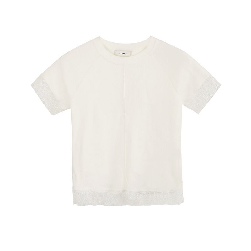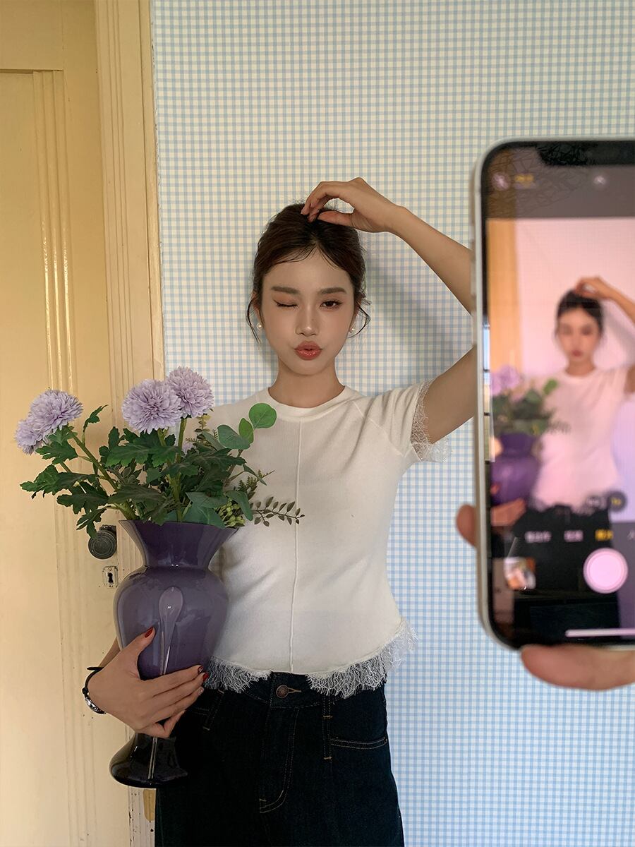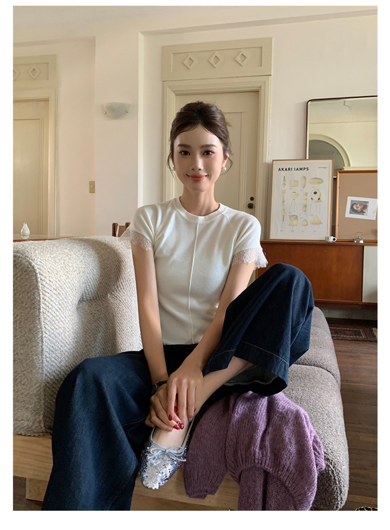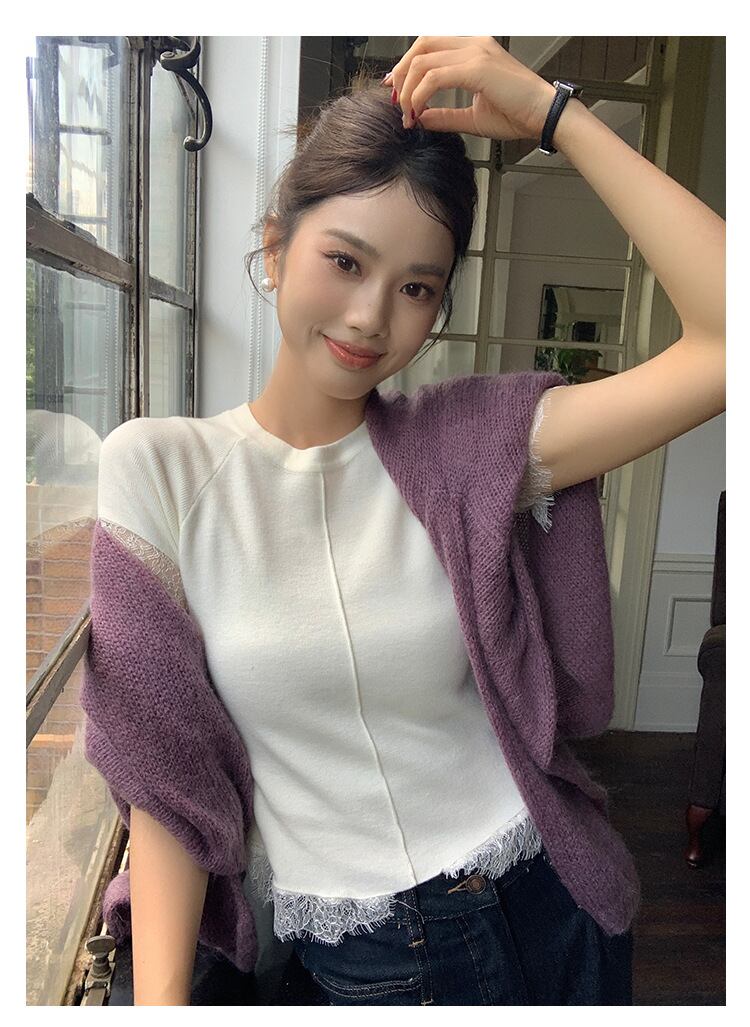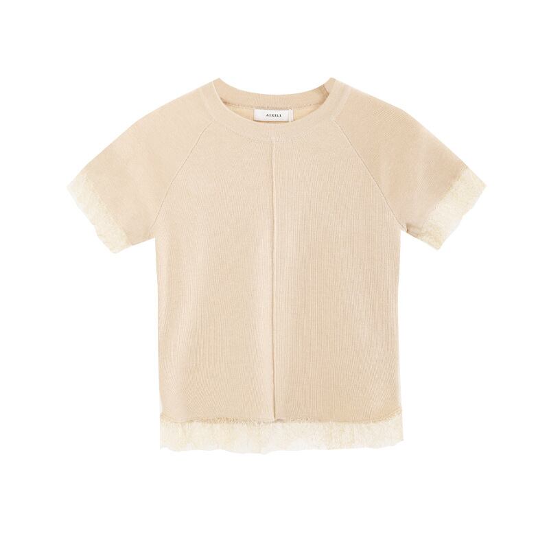 上質ニットとレースの組み合わせが、大人の女性らしさを演出