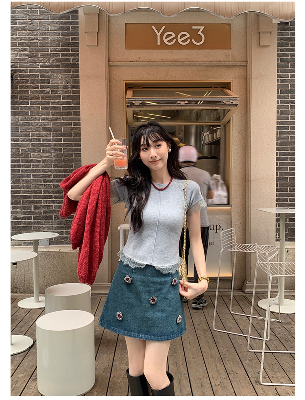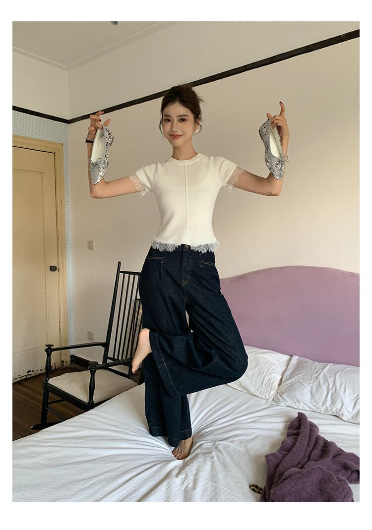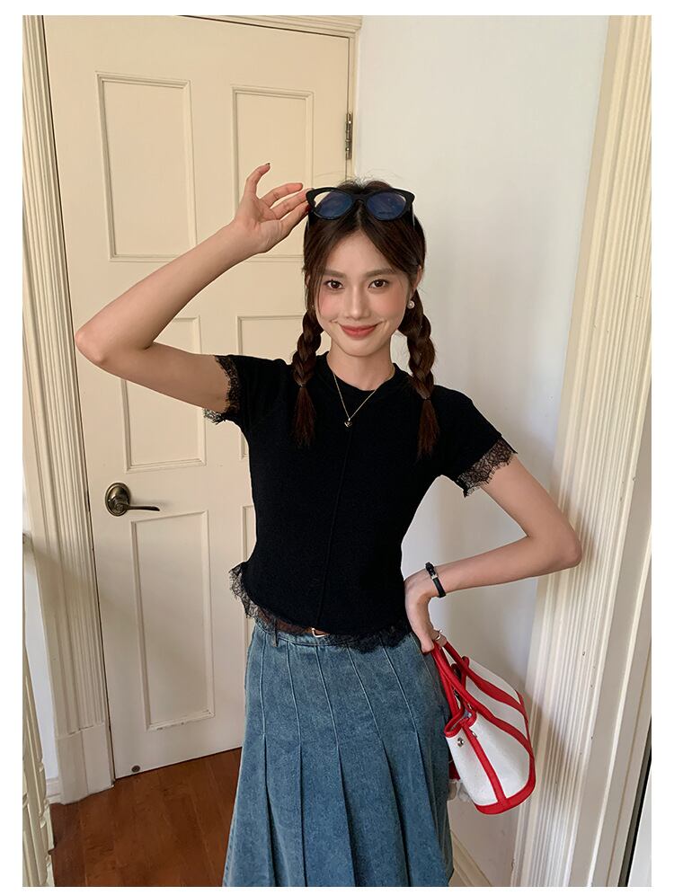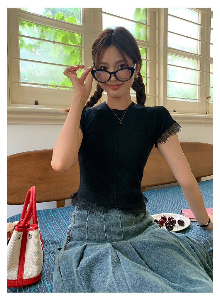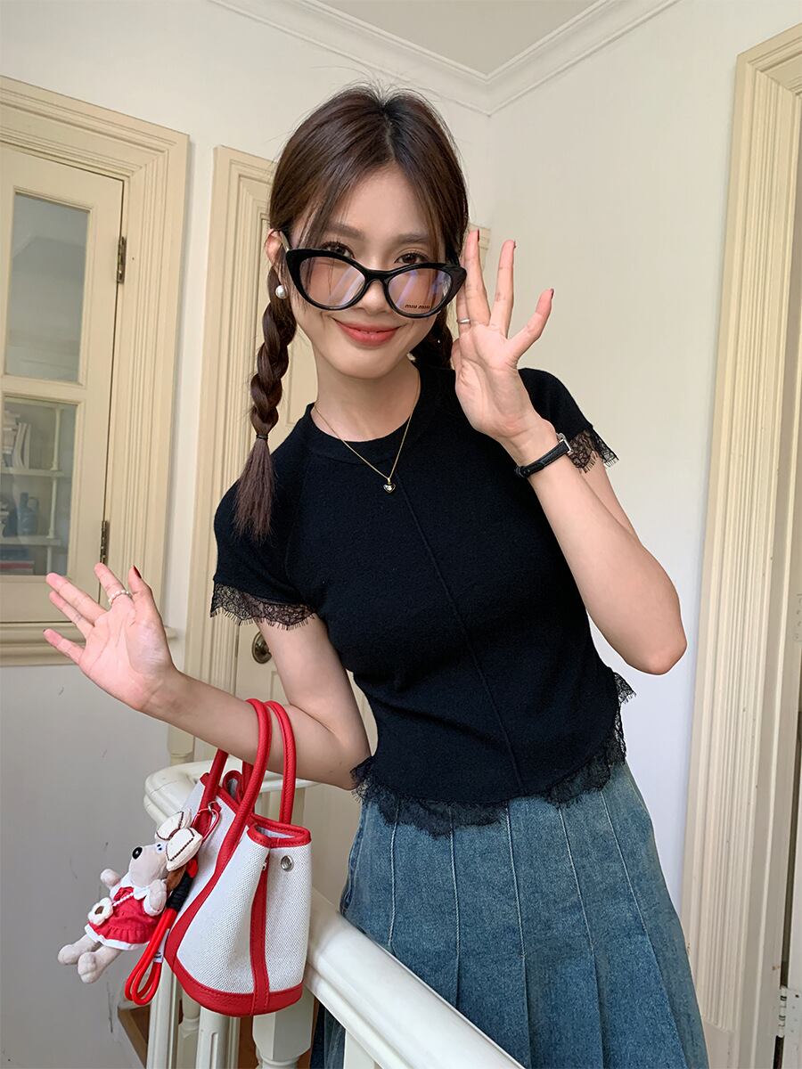 上質ニットとレースの組み合わせが、大人の女性らしさを演出