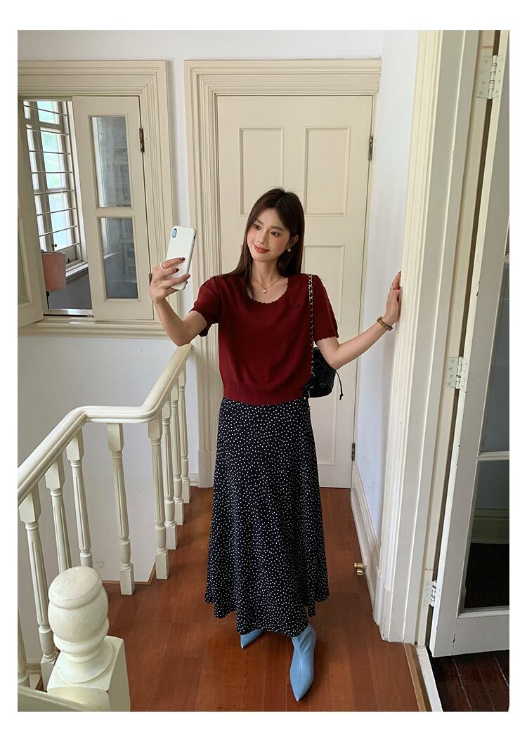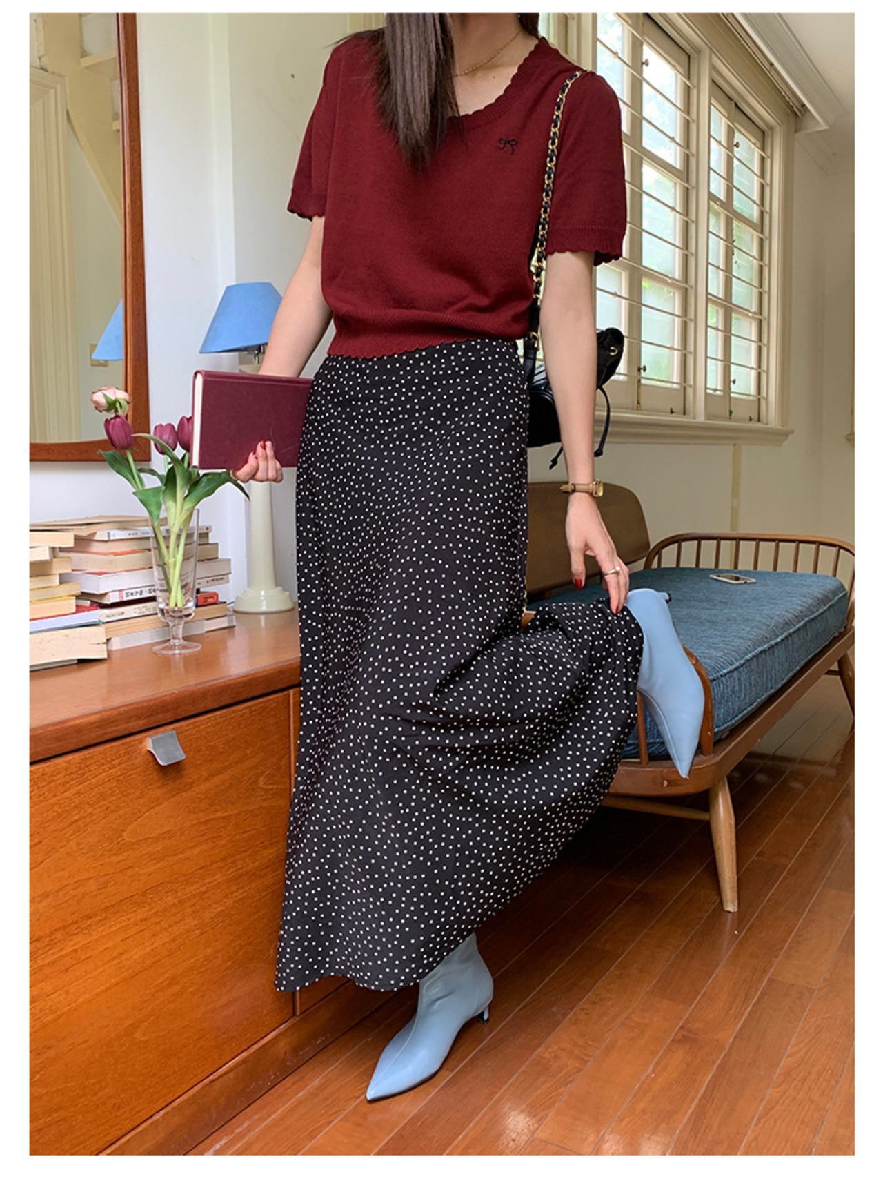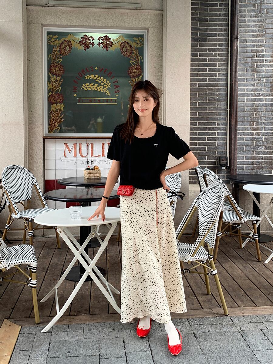 女性らしいシルエットが魅力、着回し力抜群のドット柄スカート
