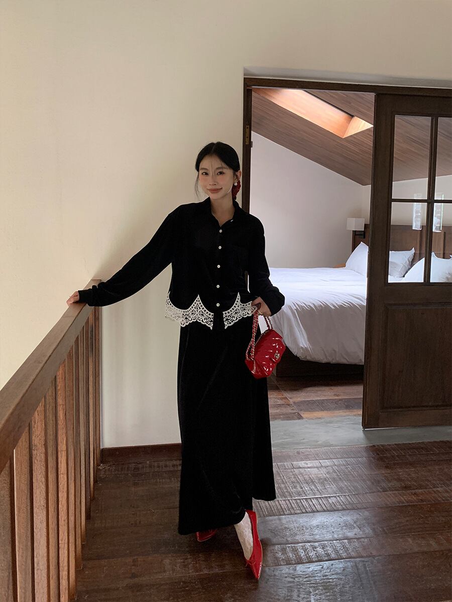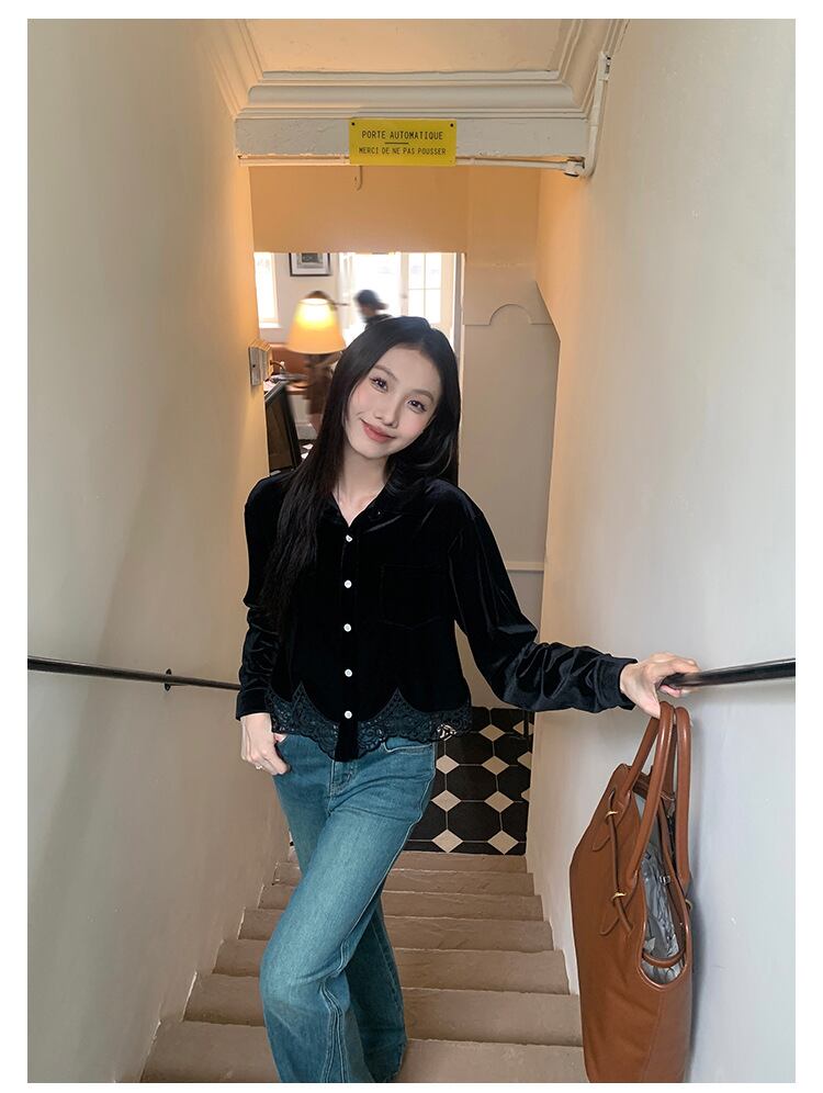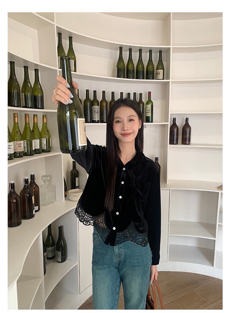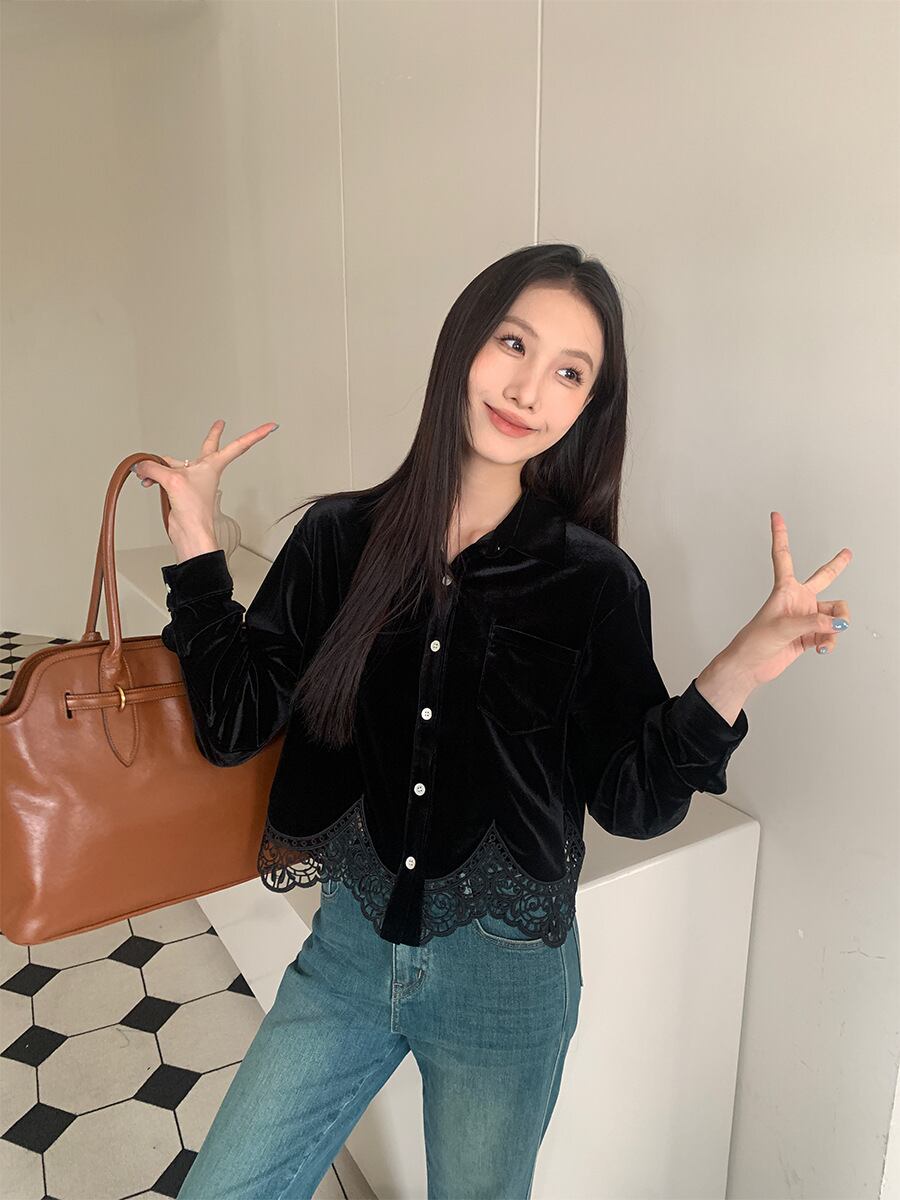 ベルベットとレースが織りなす、エレガントブラウス