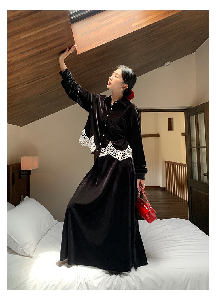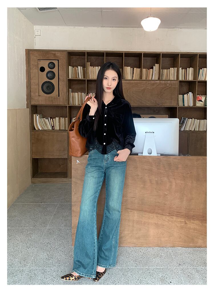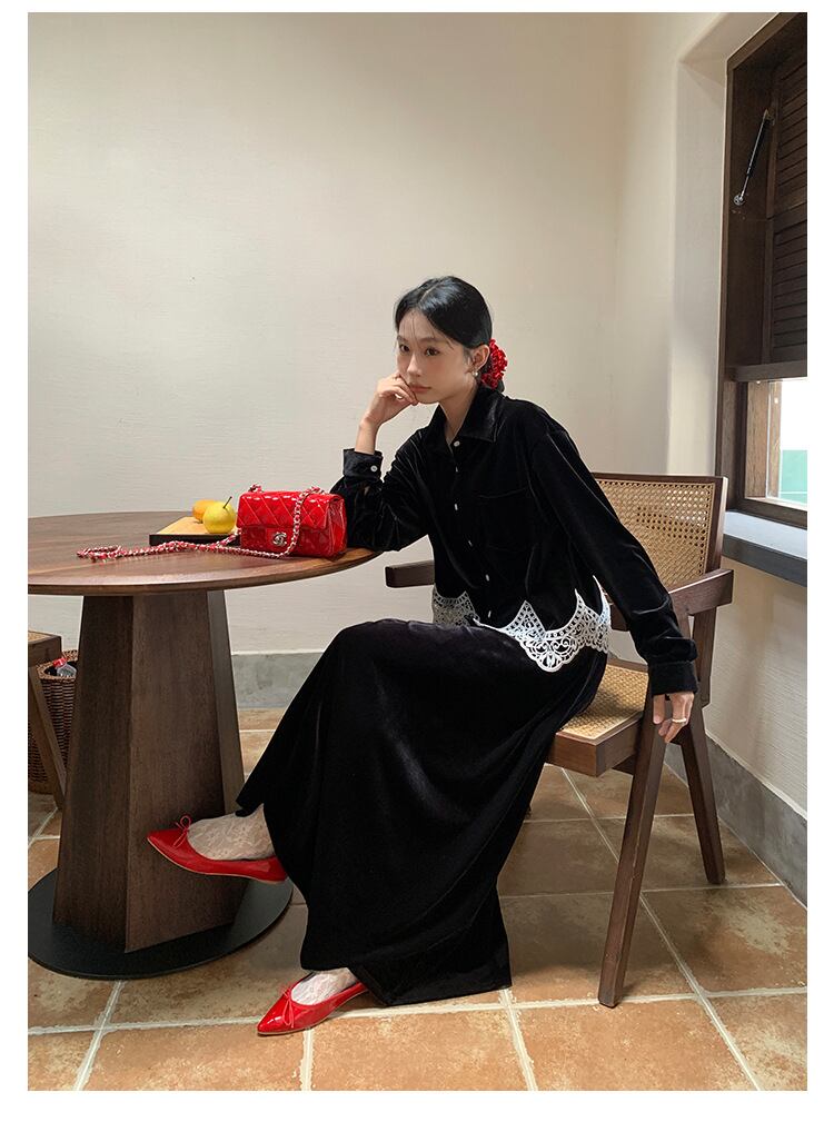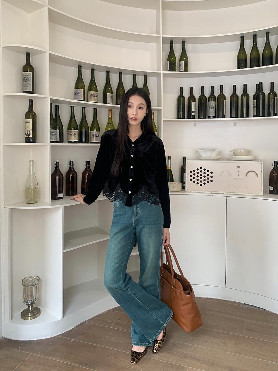 ベルベットとレースが織りなす、エレガントブラウス