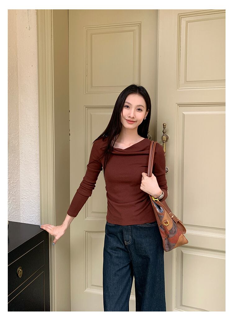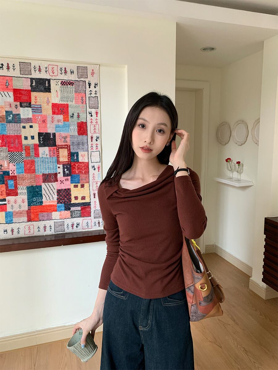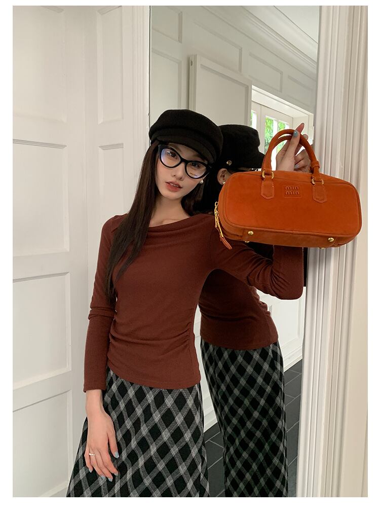 左右非対称な裾のデザインが、個性的な印象を与えます。