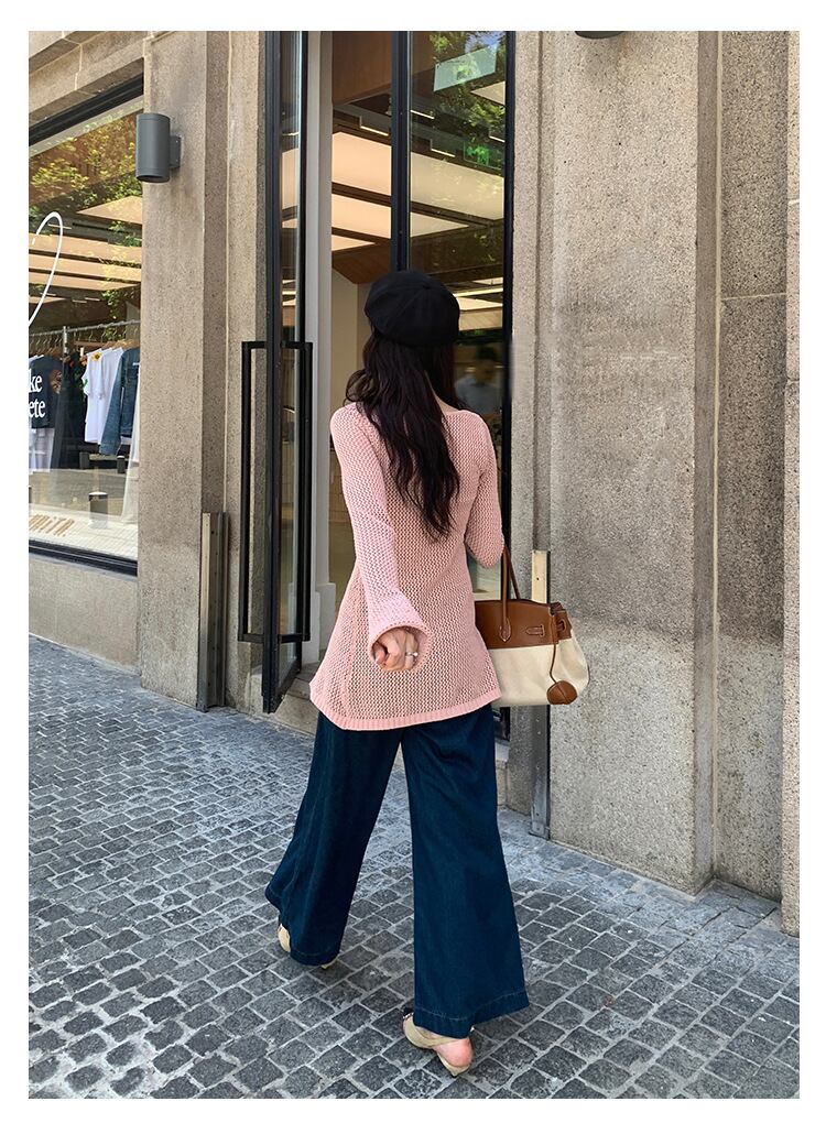 Vネックデザインと相まって、女性らしい抜け感を演出します。