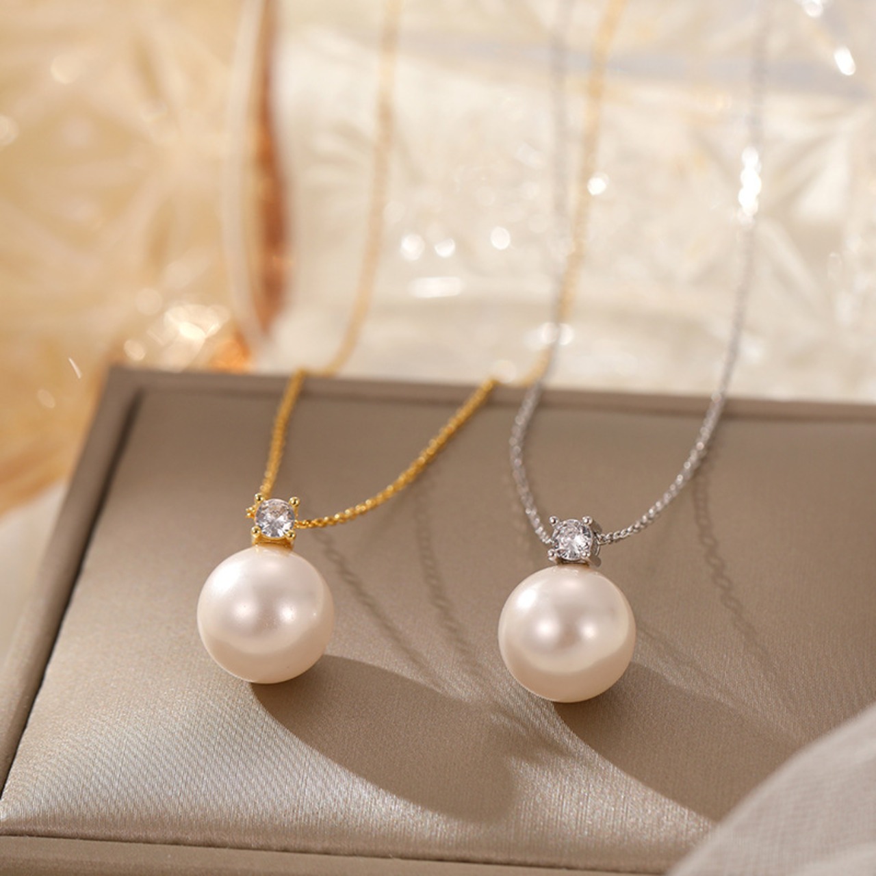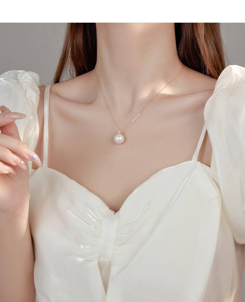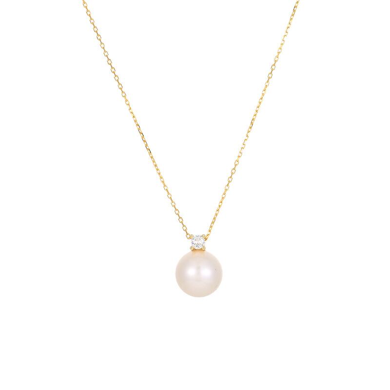オフィスシーンからカジュアルな場面まで、幅広く活躍する一粒パールネックレス。
