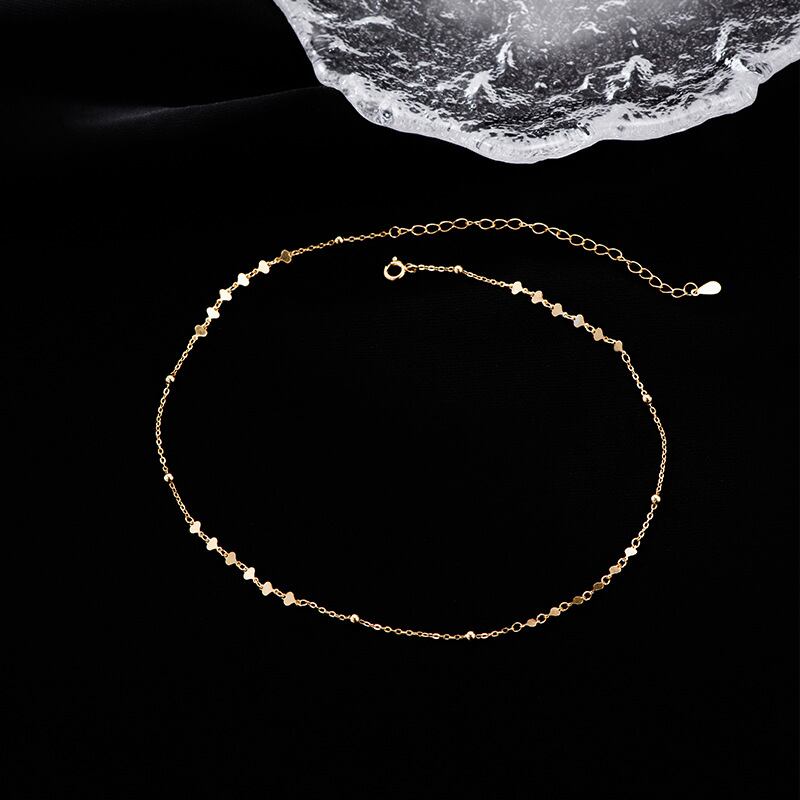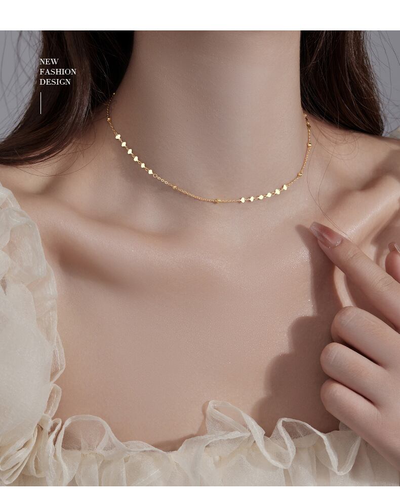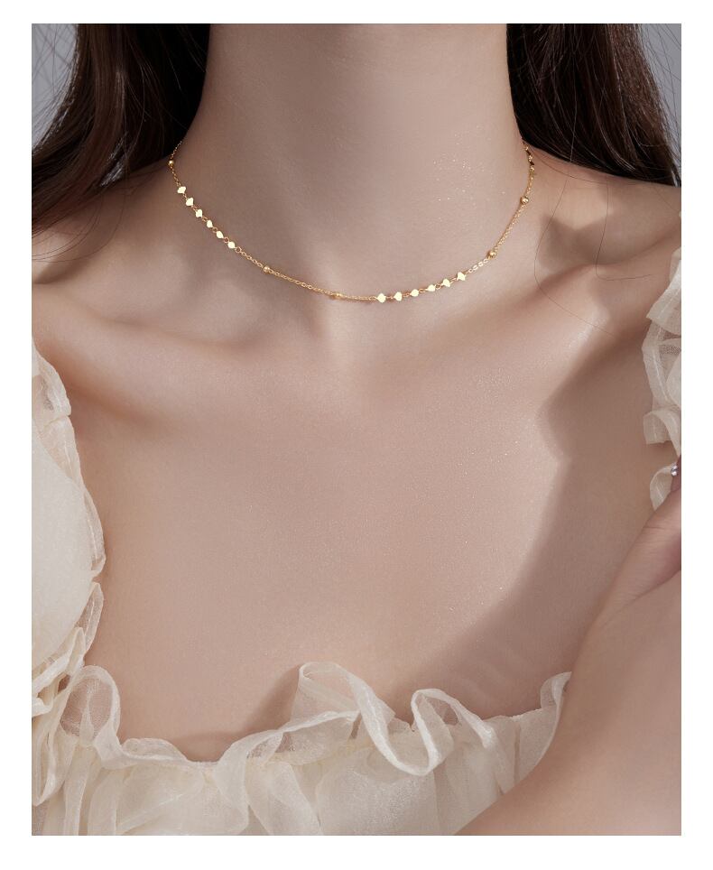 細身のチェーンが、ハートモチーフの可愛らしさを引き立てつつ、上品な印象に。