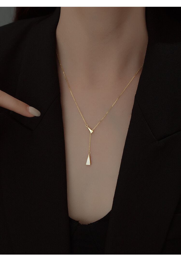 細身のチェーンとシャープなモチーフが、上品で洗練された印象を与えます。