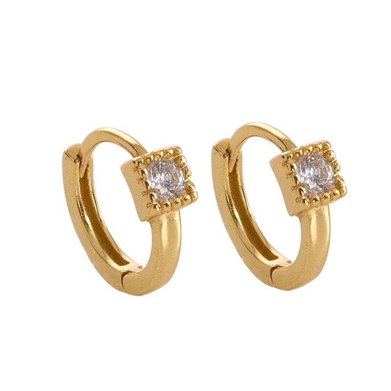 オフィスシーンからカジュアルまで、幅広く活躍するスクエアモチーフのフープピアス。