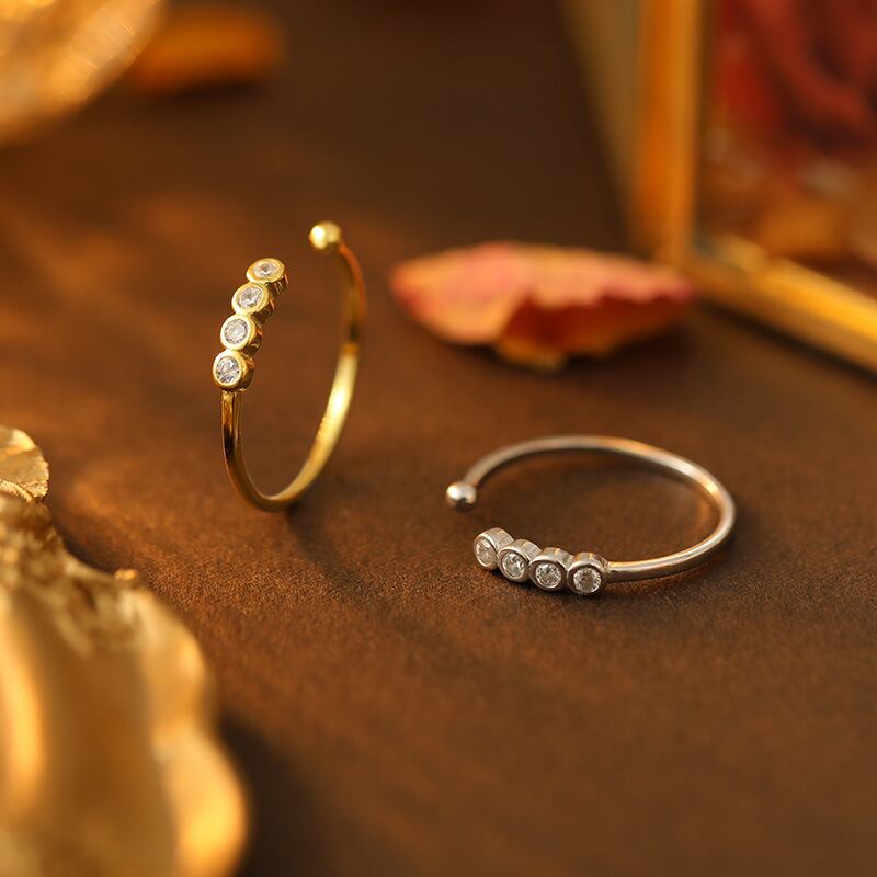 華奢なラインが美しい、ジルコニアが輝くオープンリング。