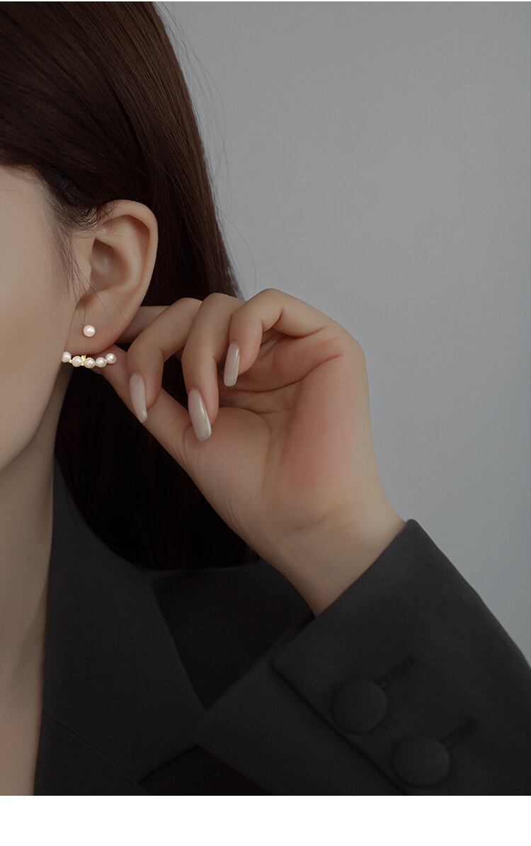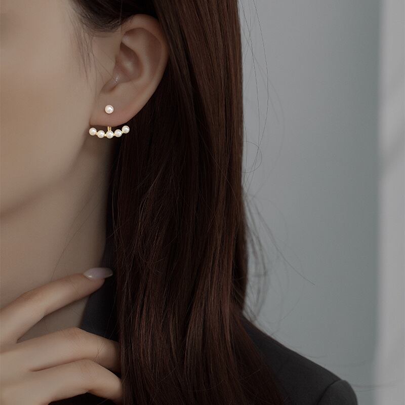 後ろ掛け式で、耳元を上品に演出。動くたびに揺れるパールが、女性らしさを引き立てます。