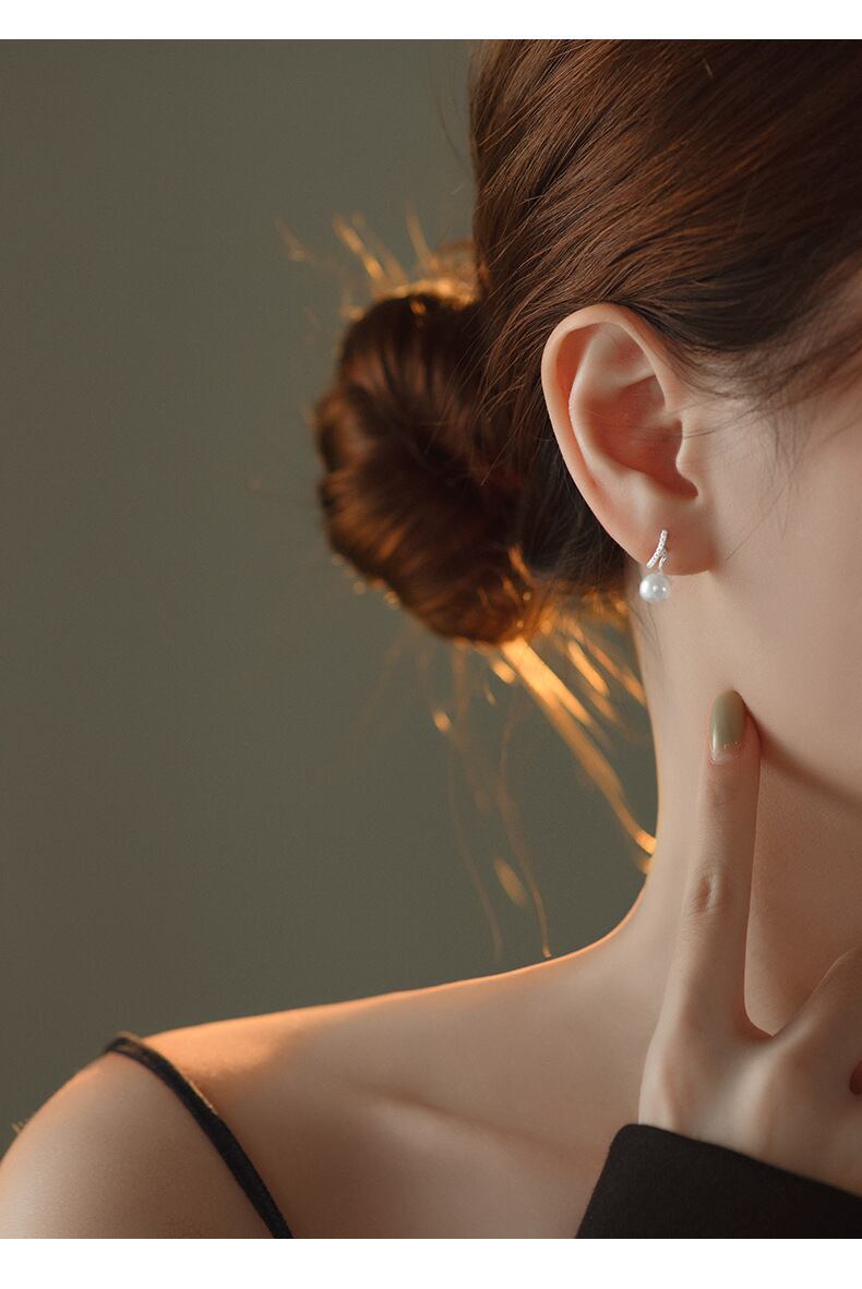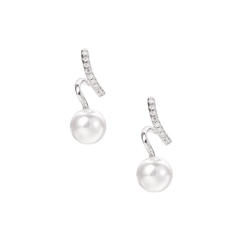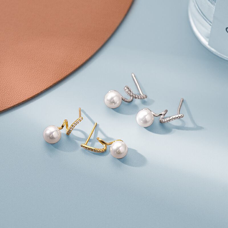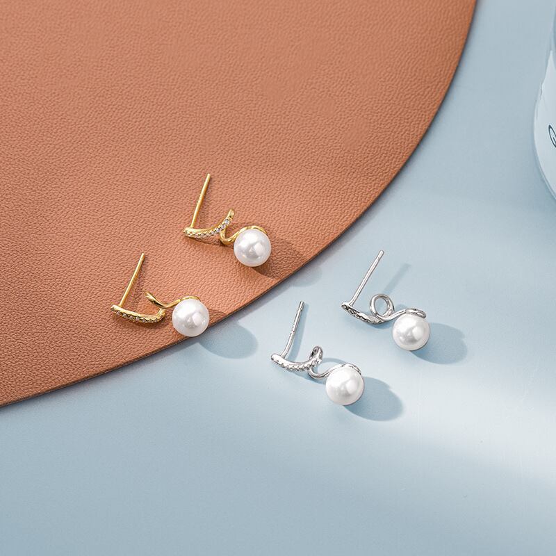フェイクパールが輝く、上品で洗練されたスタッドピアス。