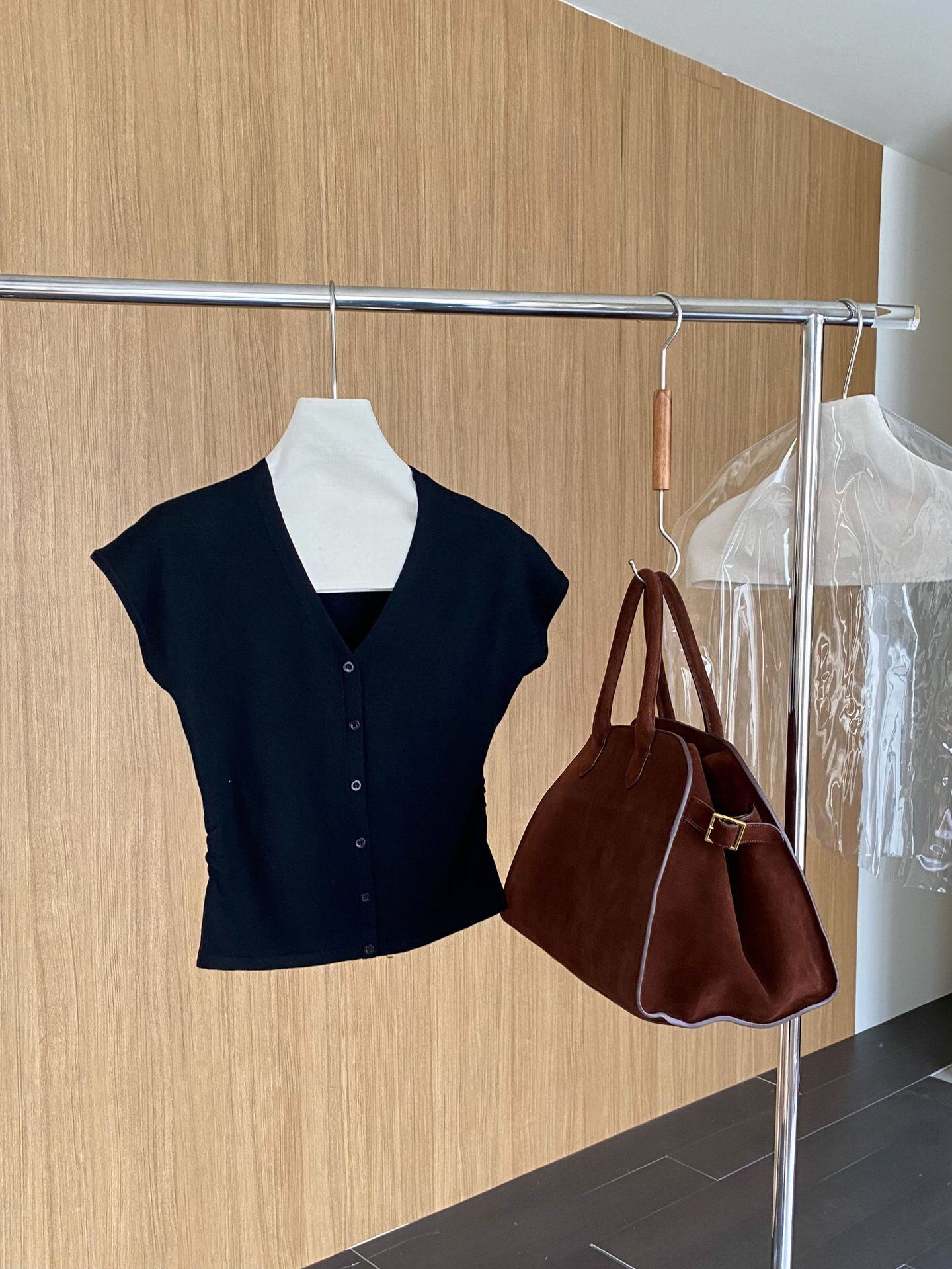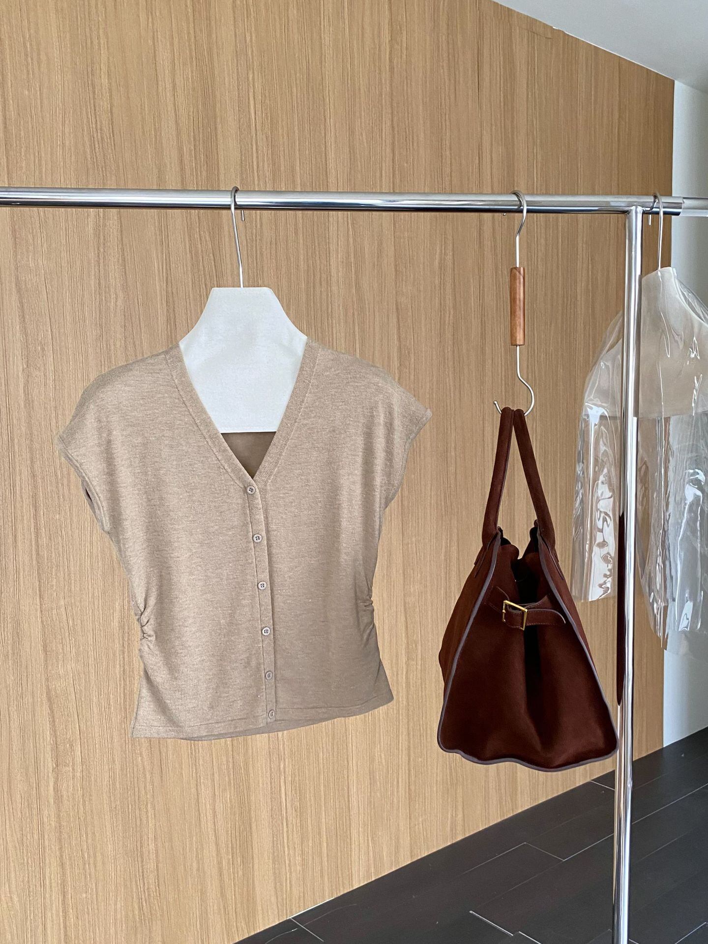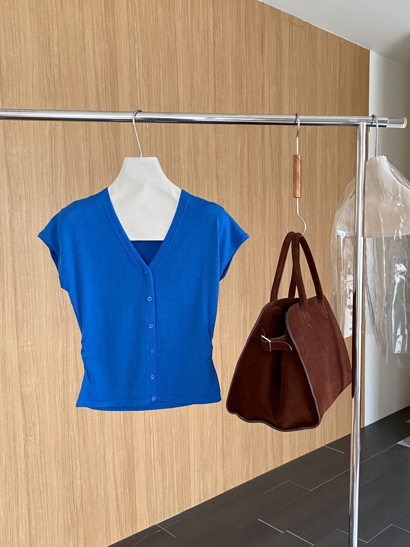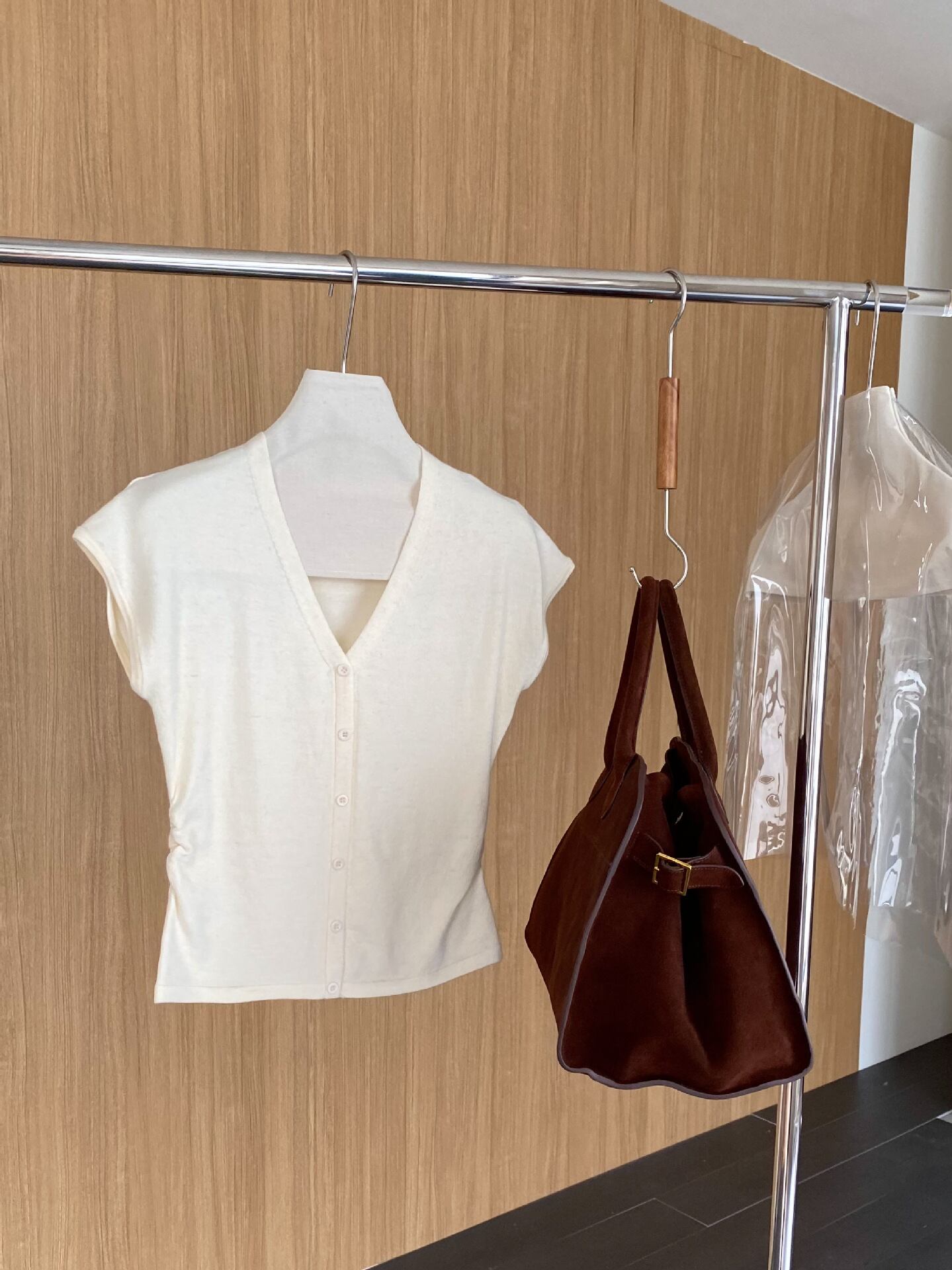 ブラウスやシャツの上に合わせて、上品な着こなしを楽しめます。