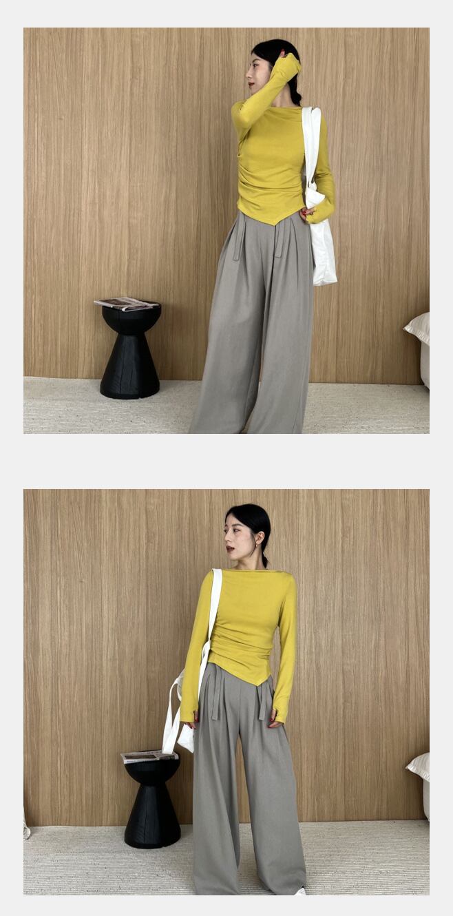 ◎アシンメトリーな裾がスタイリングのアクセントに