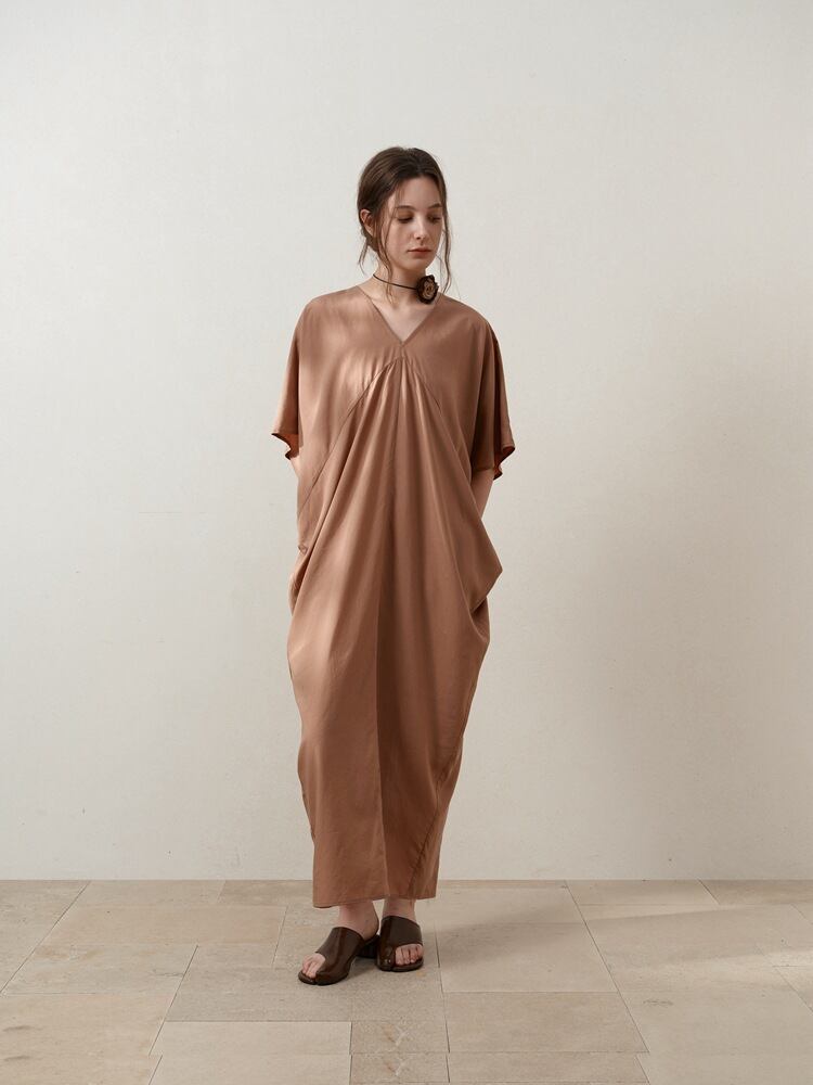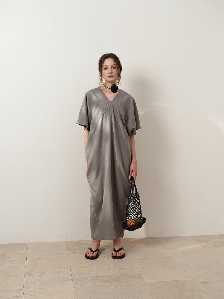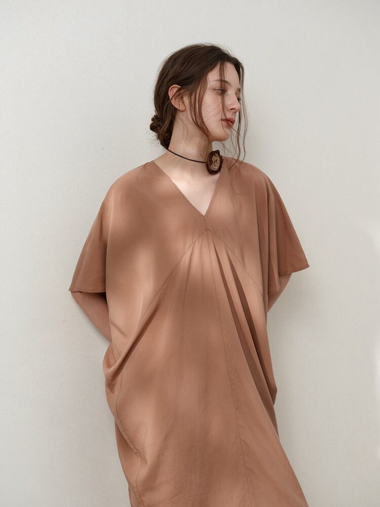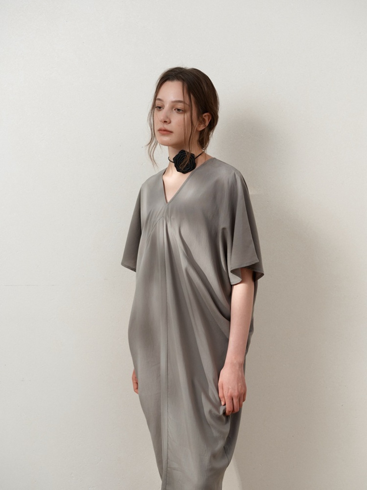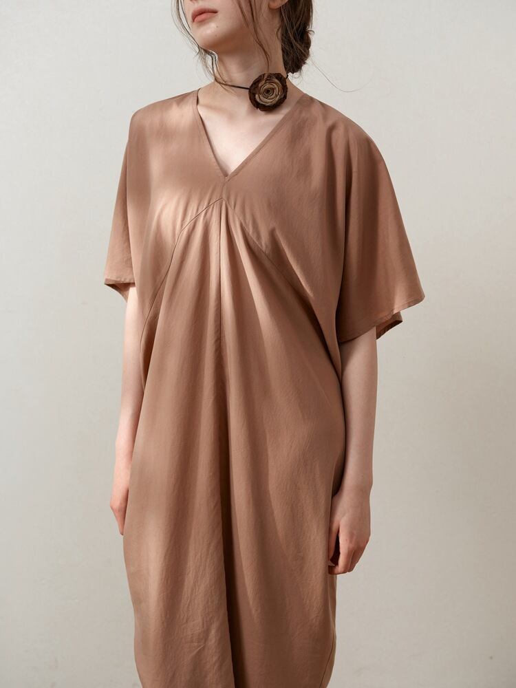流れるようなシルエットが美しい、大人のためのドレープワンピース。