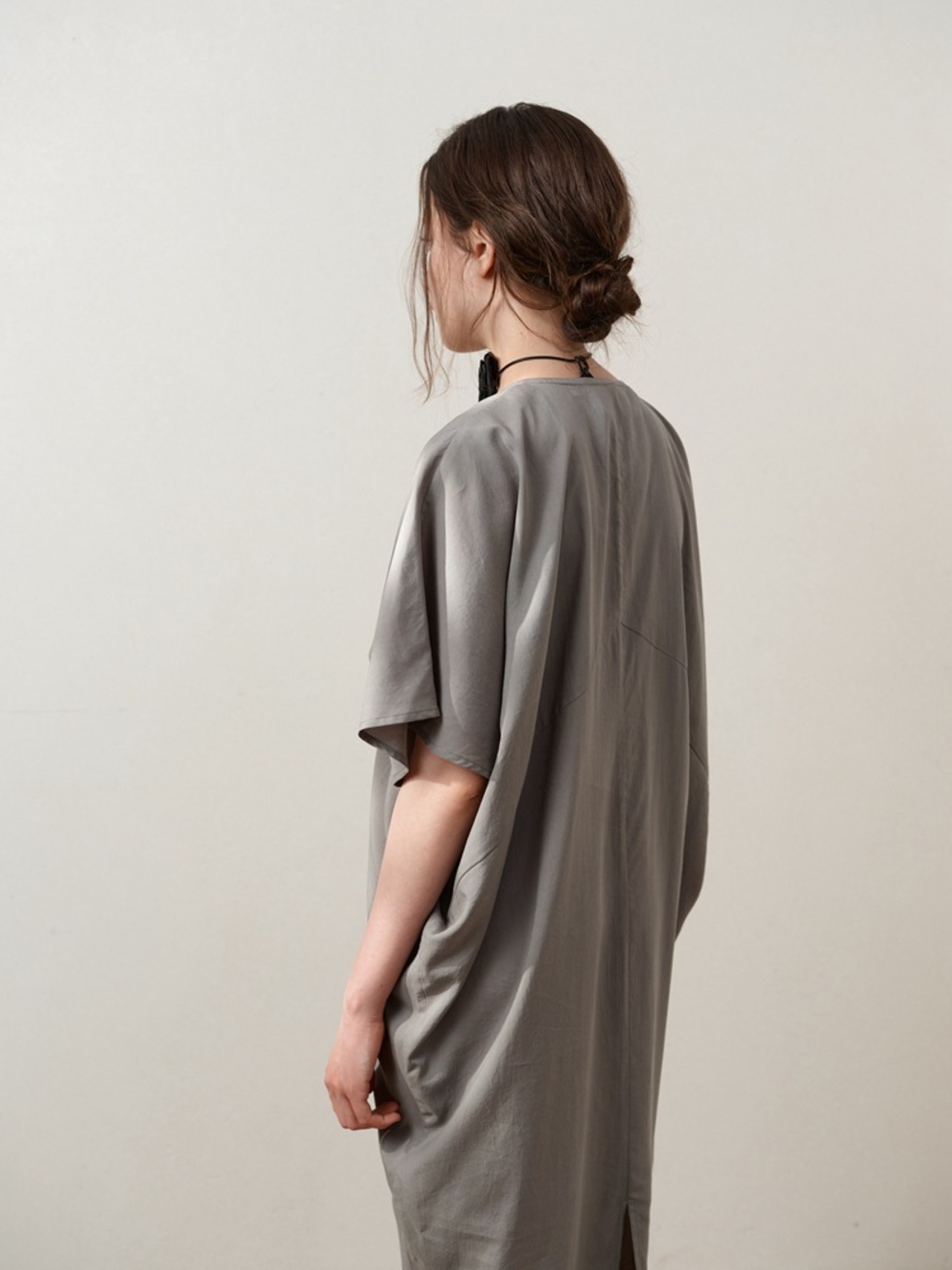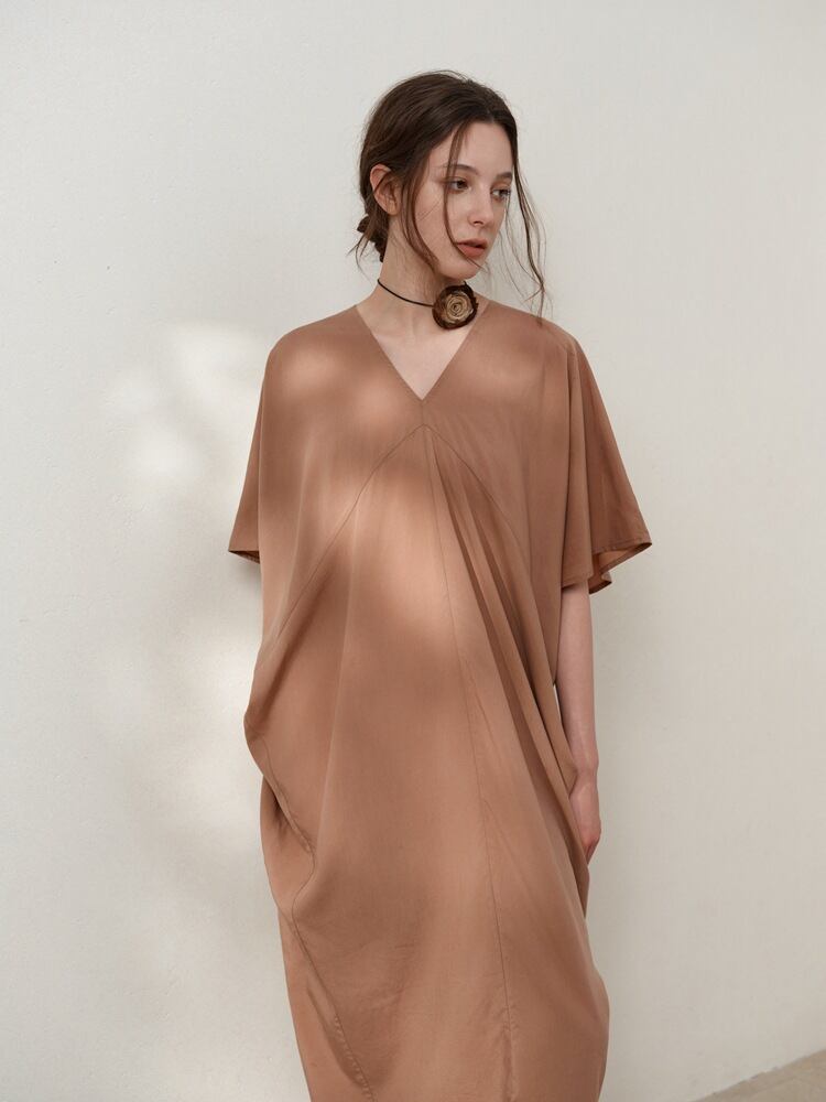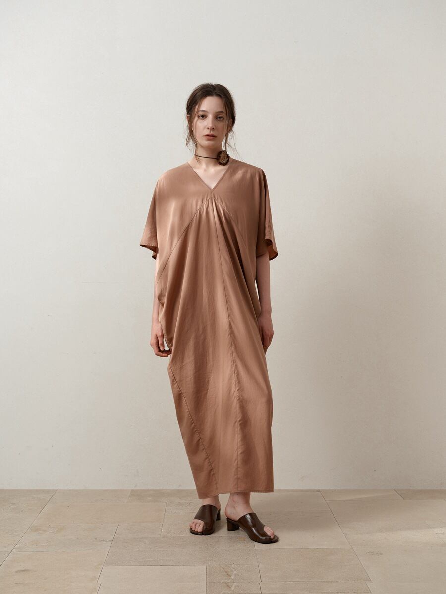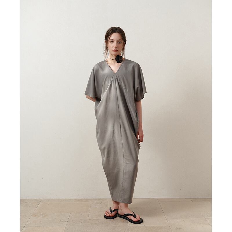 流れるようなシルエットが美しい、大人のためのドレープワンピース。