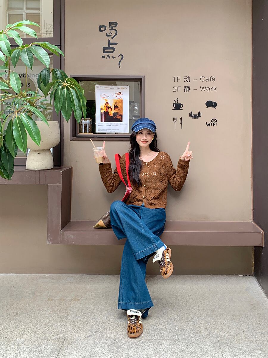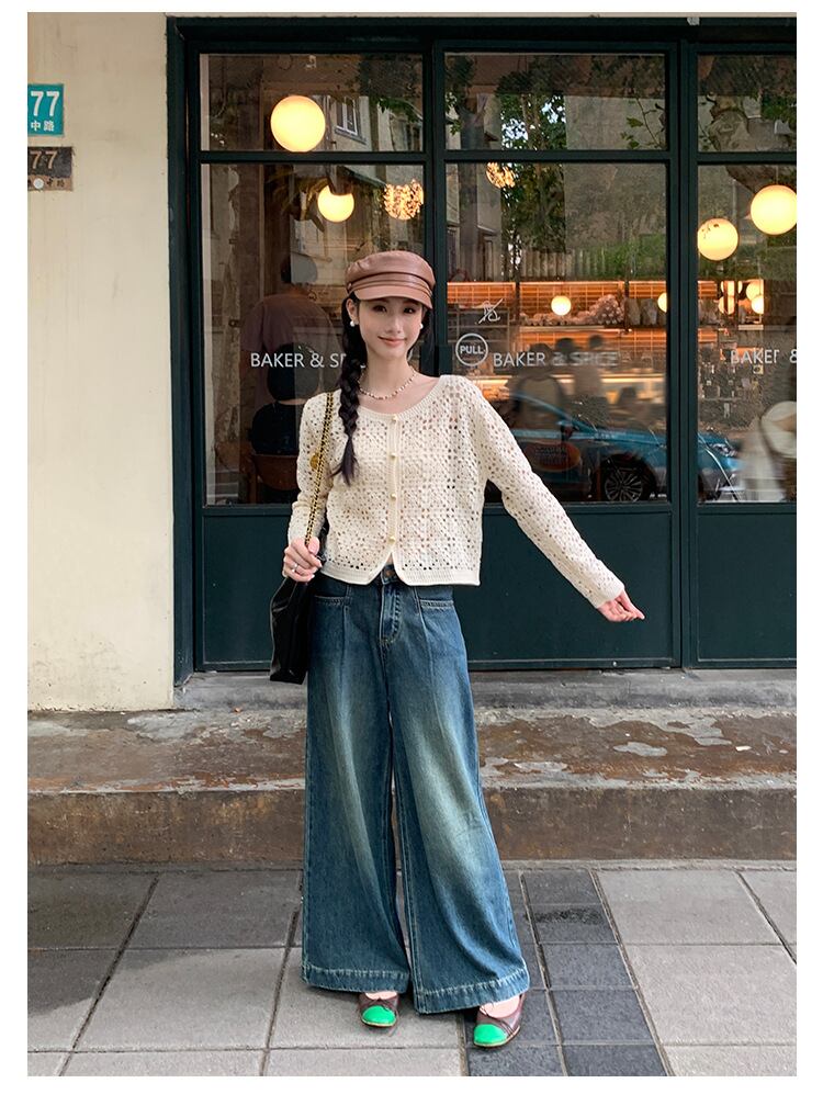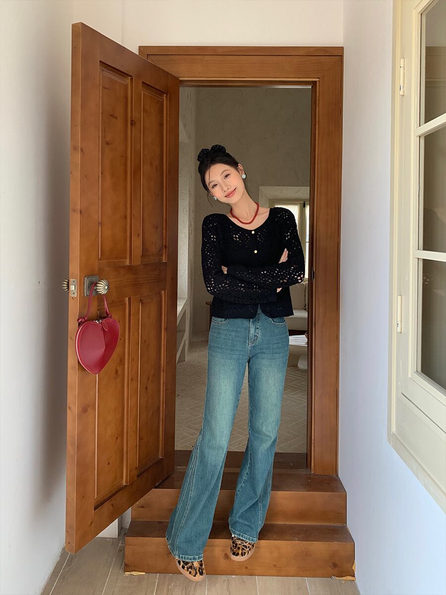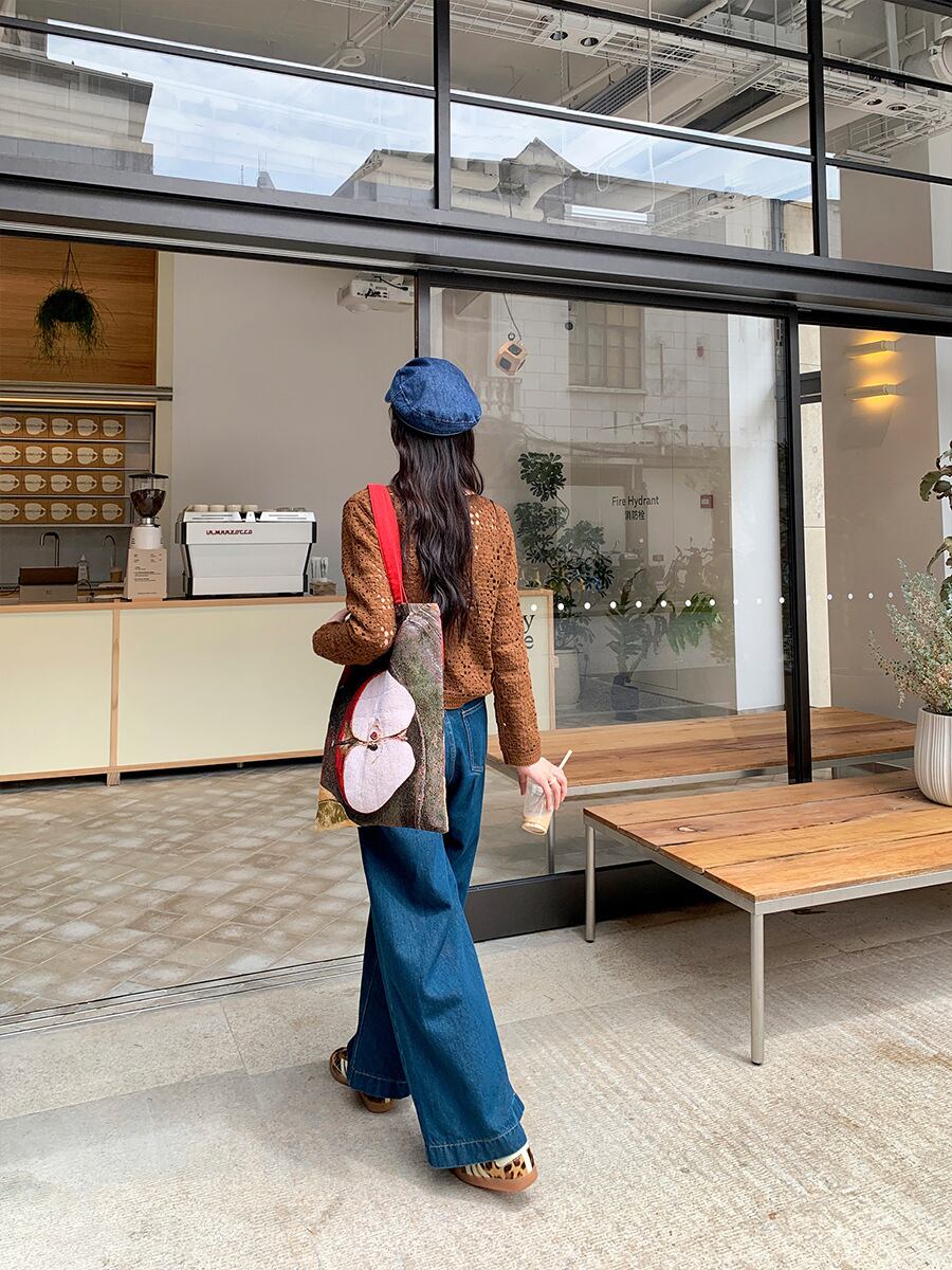 繊細なクローシェ編みと透かし編みが、上品で女性らしい印象を与えてくれます。