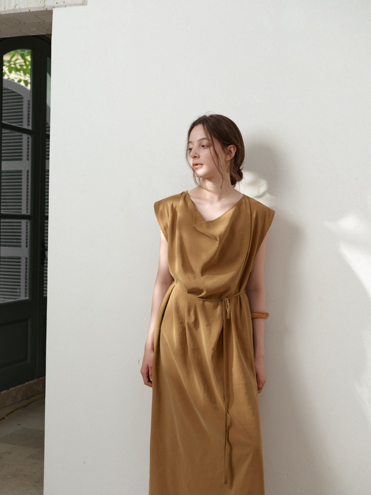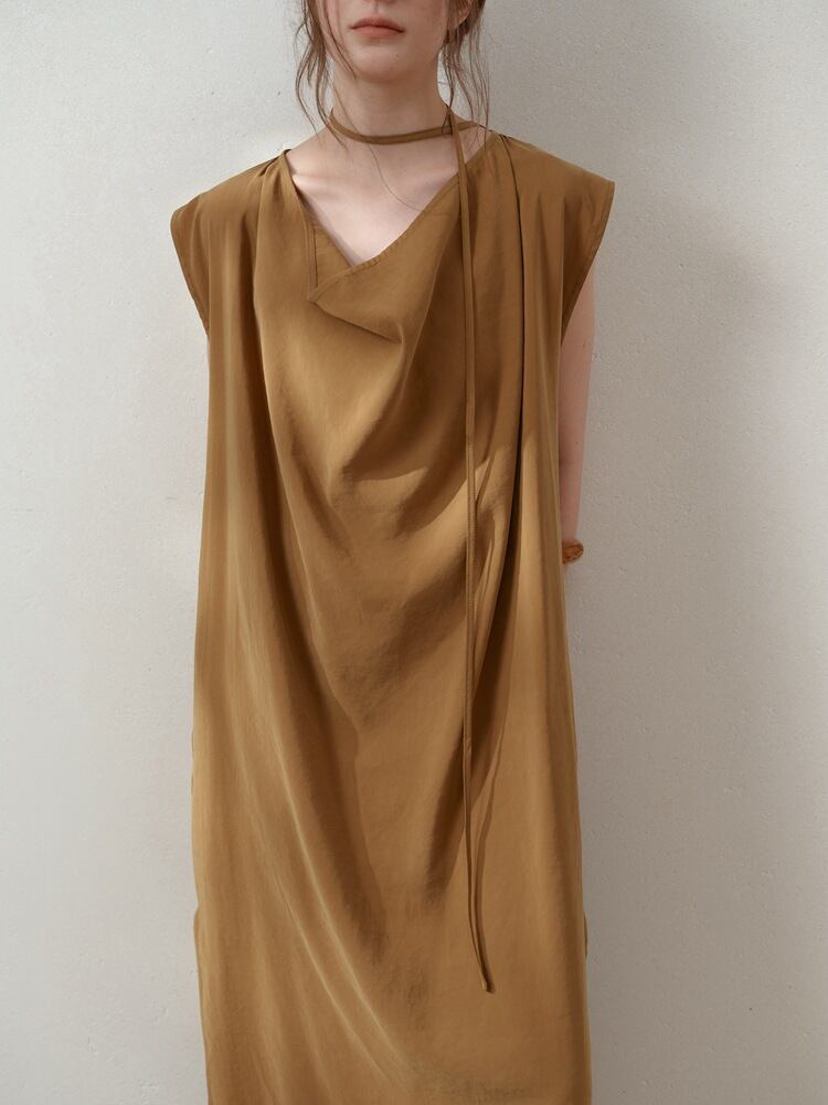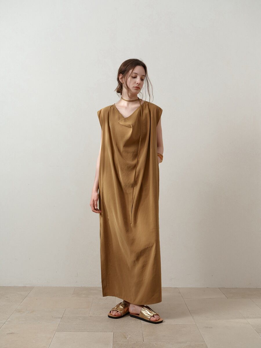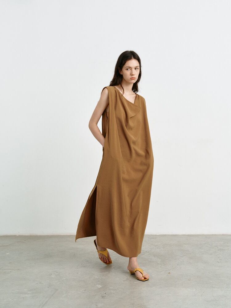 上品なネックラインが魅力的、大人のためのロングワンピース #TT2074