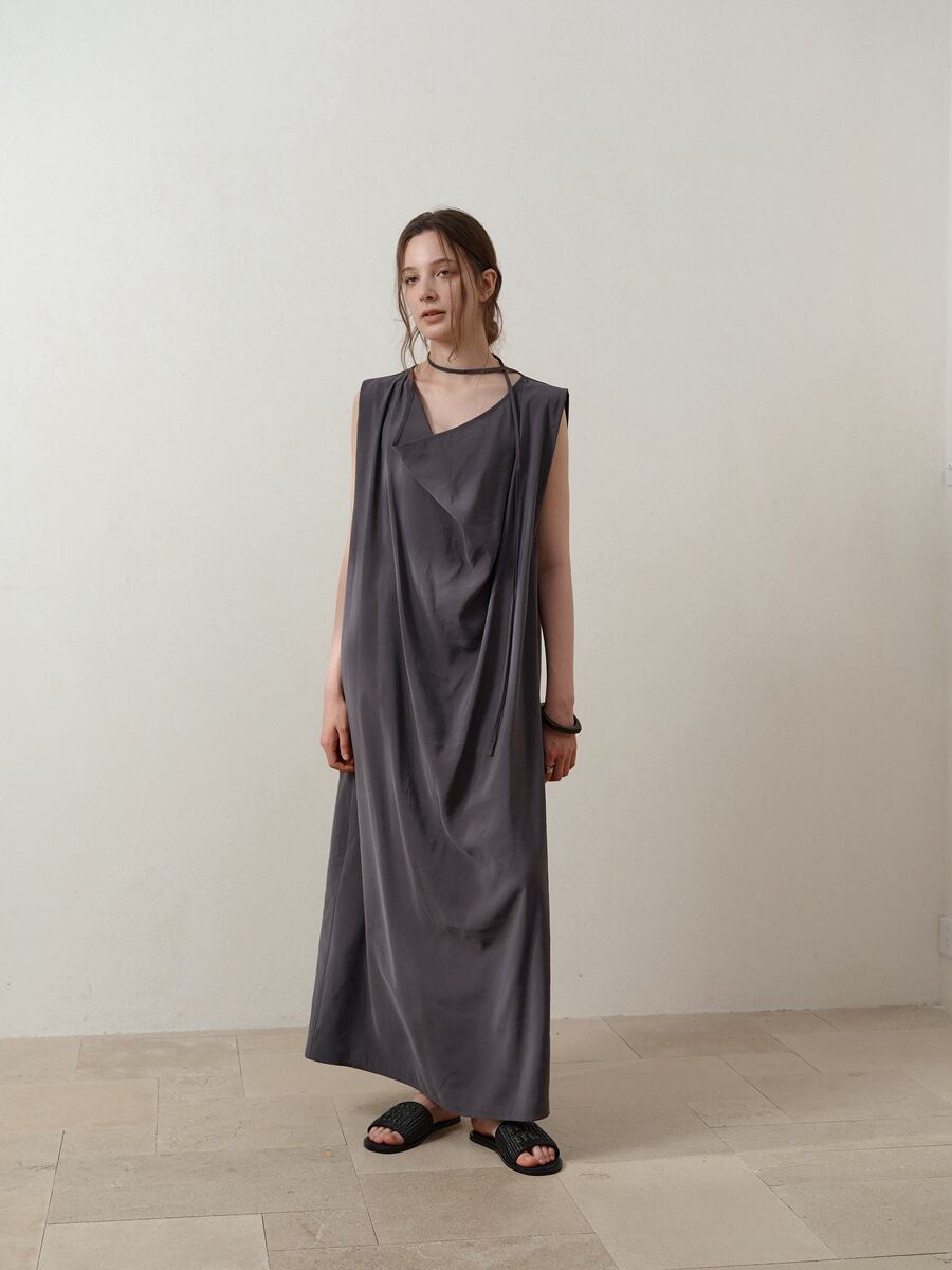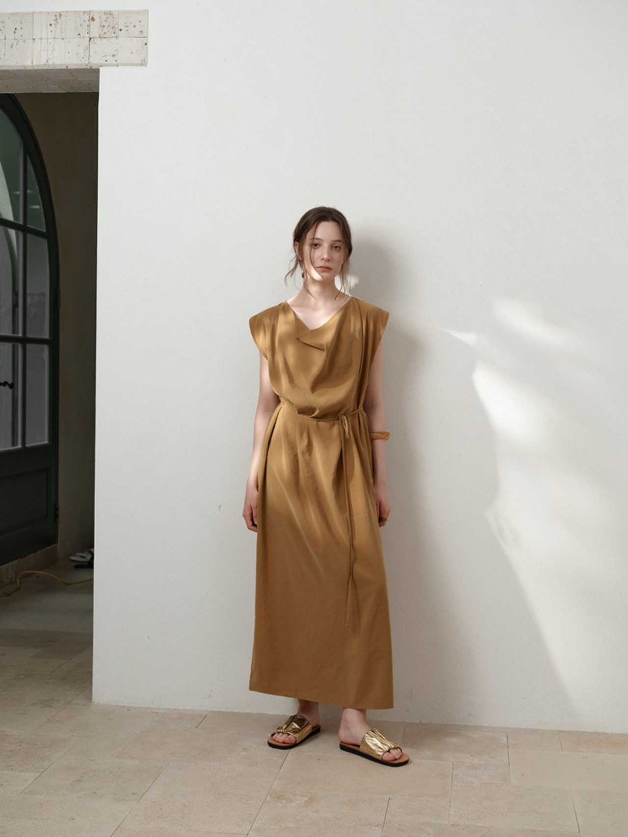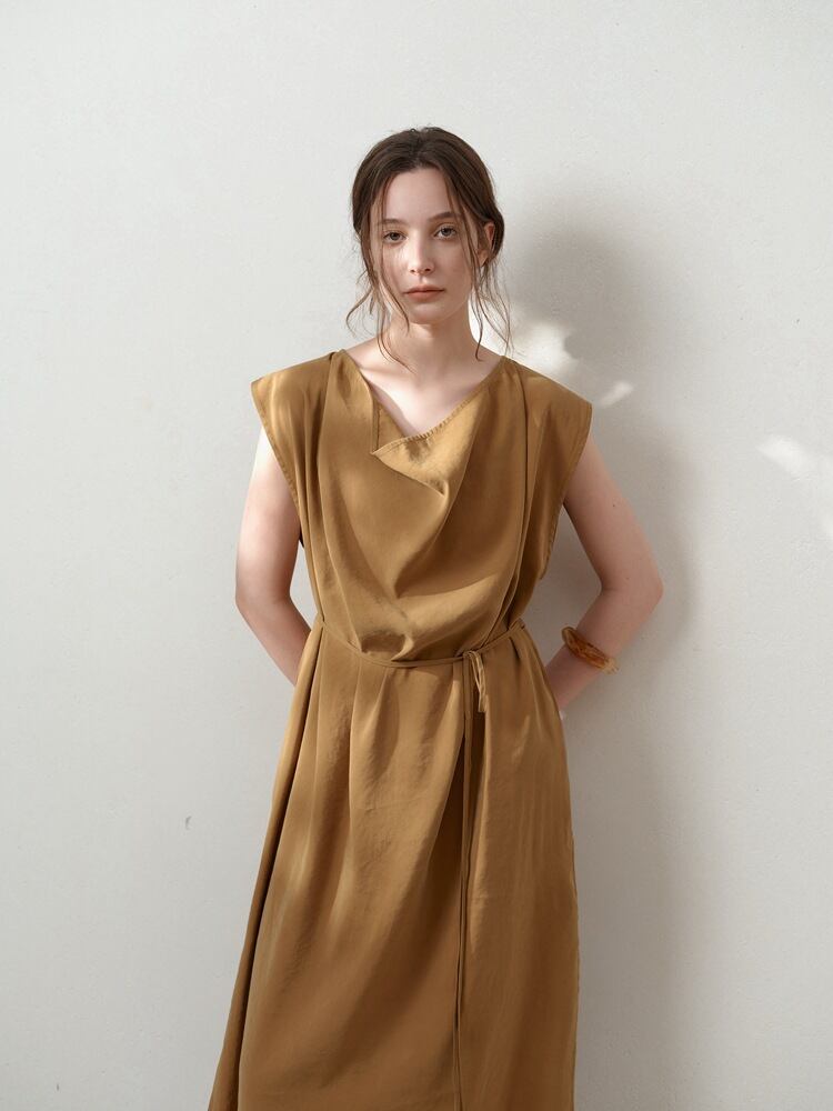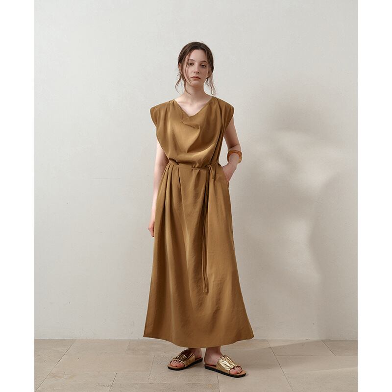 上品なネックラインが魅力的、大人のためのロングワンピース #TT2074